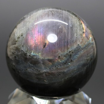側面の美しい輝きだけでなく、鉱石を磨き上げた丸玉だからこそ現れる上面と下面に見られる層状の模様もお楽しみいただけます。