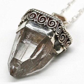 多くの原石がポイント欠損の激しいガウリシャンカール産ヒマラヤ煙水晶の中でも、非常に保存状態の良い数少ない “美形状ナチュラルポイント” を厳選し、ペンダントトップに仕上げた逸品でございます。
