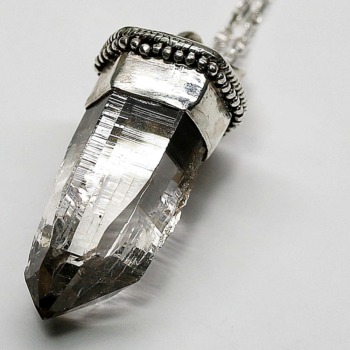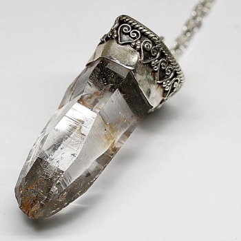 多くの原石がポイント欠損の激しいガウリシャンカール産ヒマラヤ煙水晶の中でも、非常に保存状態の良い数少ない “美形状ナチュラルポイント” を厳選し、ペンダントトップに仕上げた逸品でございます。