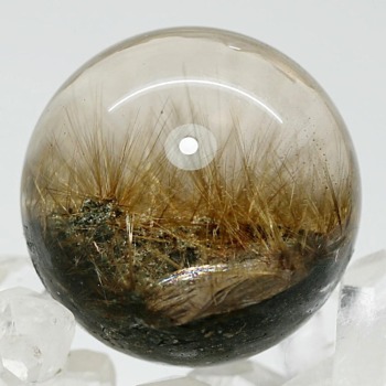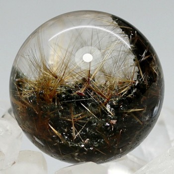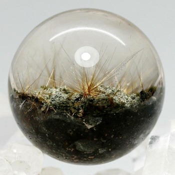 透明度高い水晶内部に、鉱物が閉じ込められたガーデンクォーツ丸玉でございます。