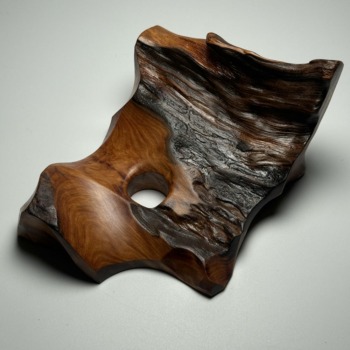 ご覧の屋久杉台座は、お色も形状もすべて異なる唯一無二の “1点物” でございます。