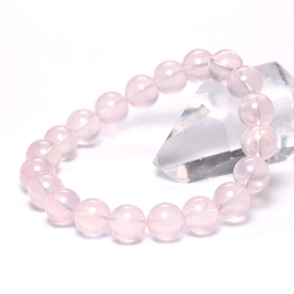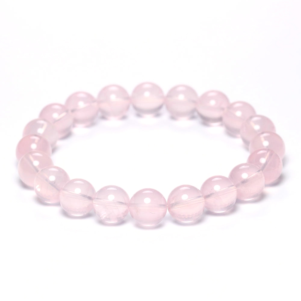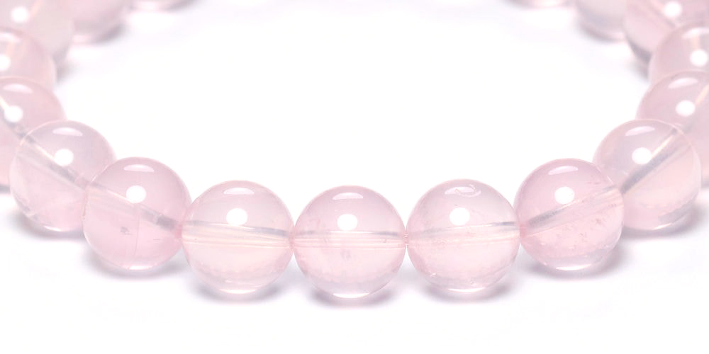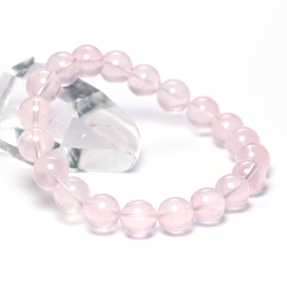 [高品質]マダガスカル産ローズクォーツブレスレット(約10mm玉・ミルキーピンク)