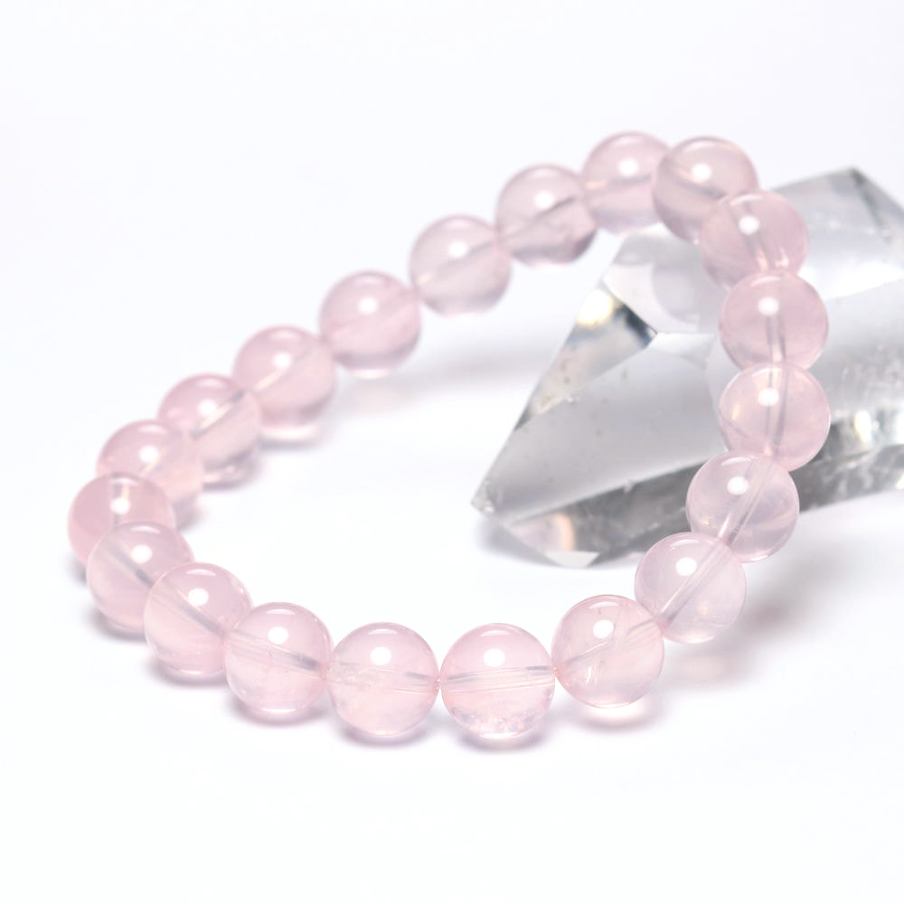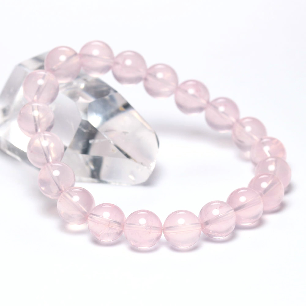 [高品質]マダガスカル産ローズクォーツブレスレット(約9.5mm玉・ミルキーピンク)