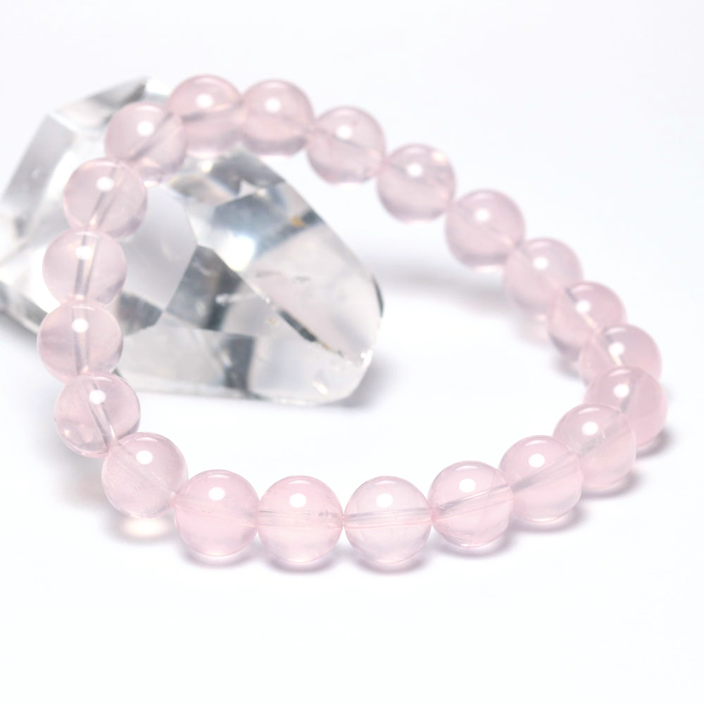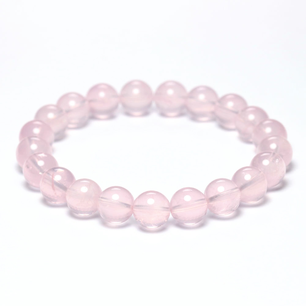 [高品質]マダガスカル産ローズクォーツブレスレット(約9mm玉・ミルキーピンク)