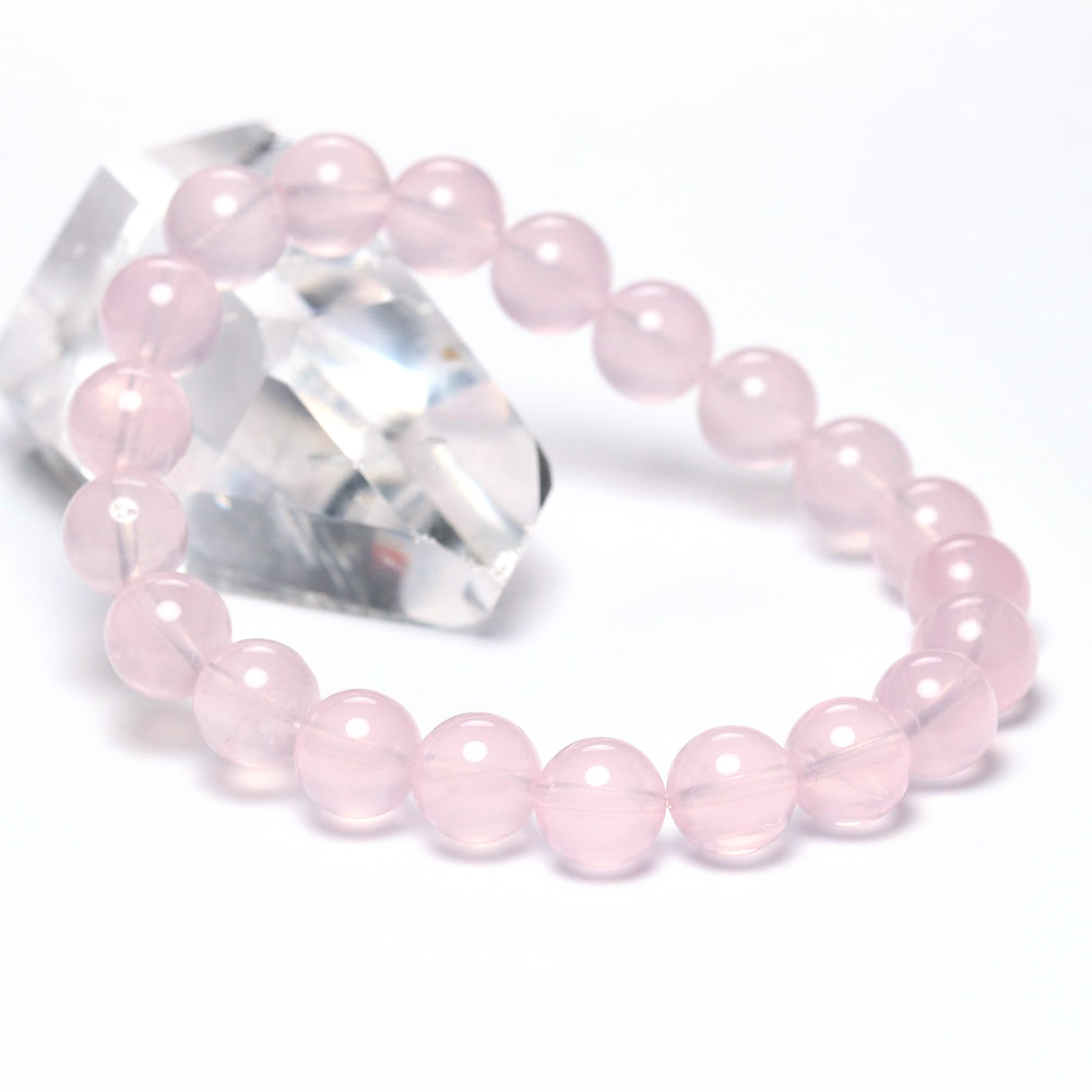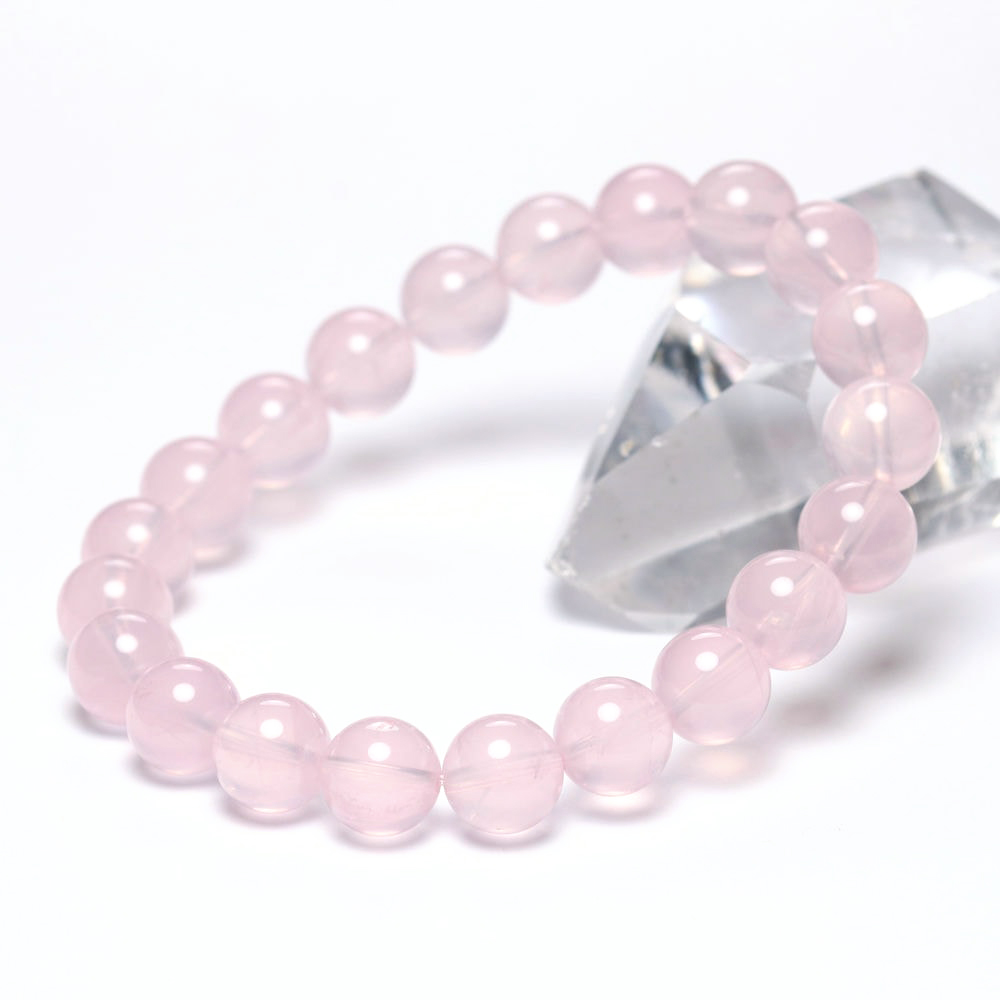 [高品質]マダガスカル産ローズクォーツブレスレット(約9mm玉・ミルキーピンク)