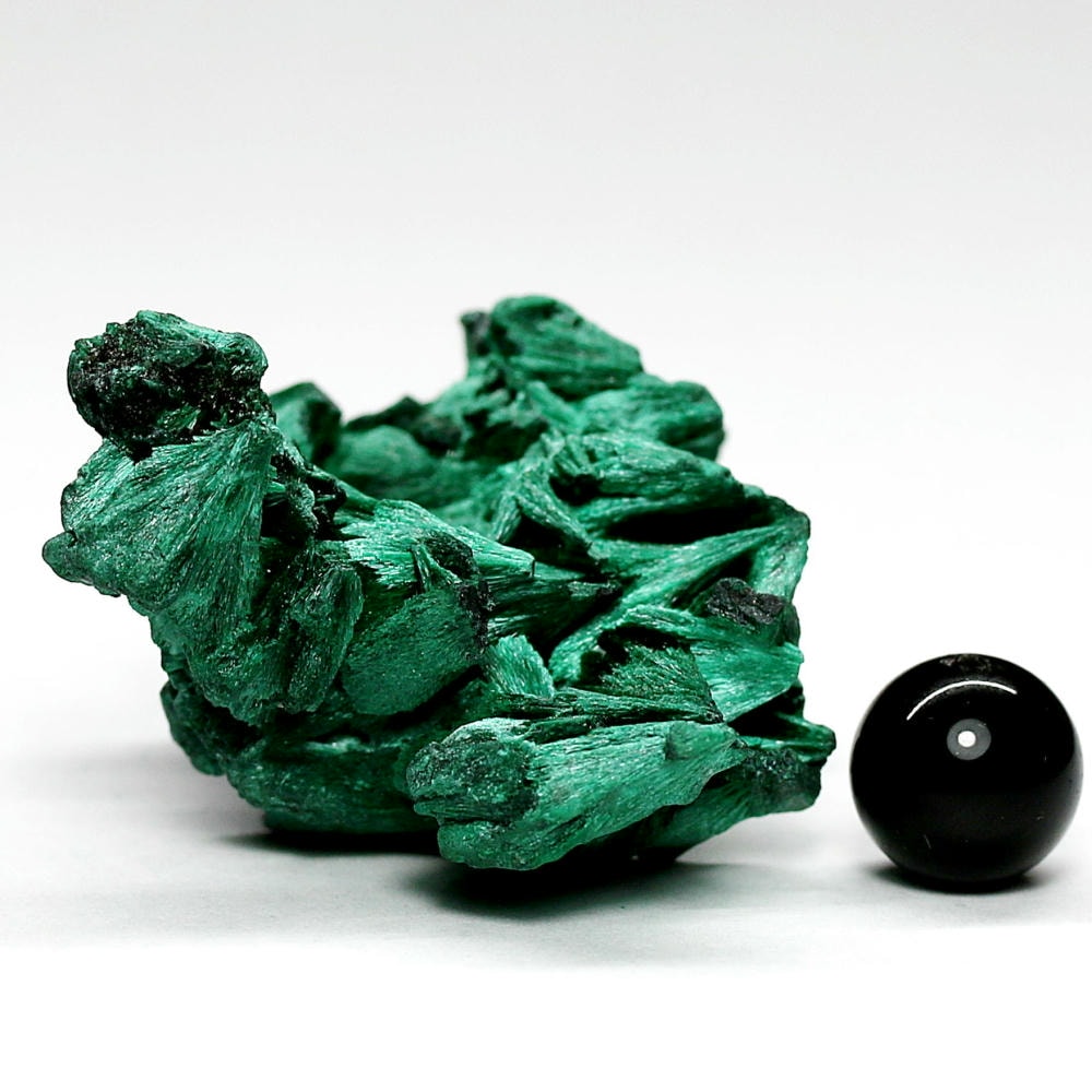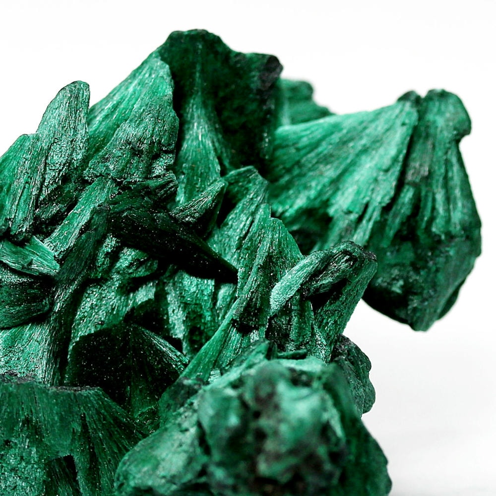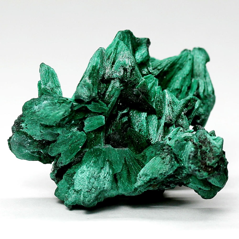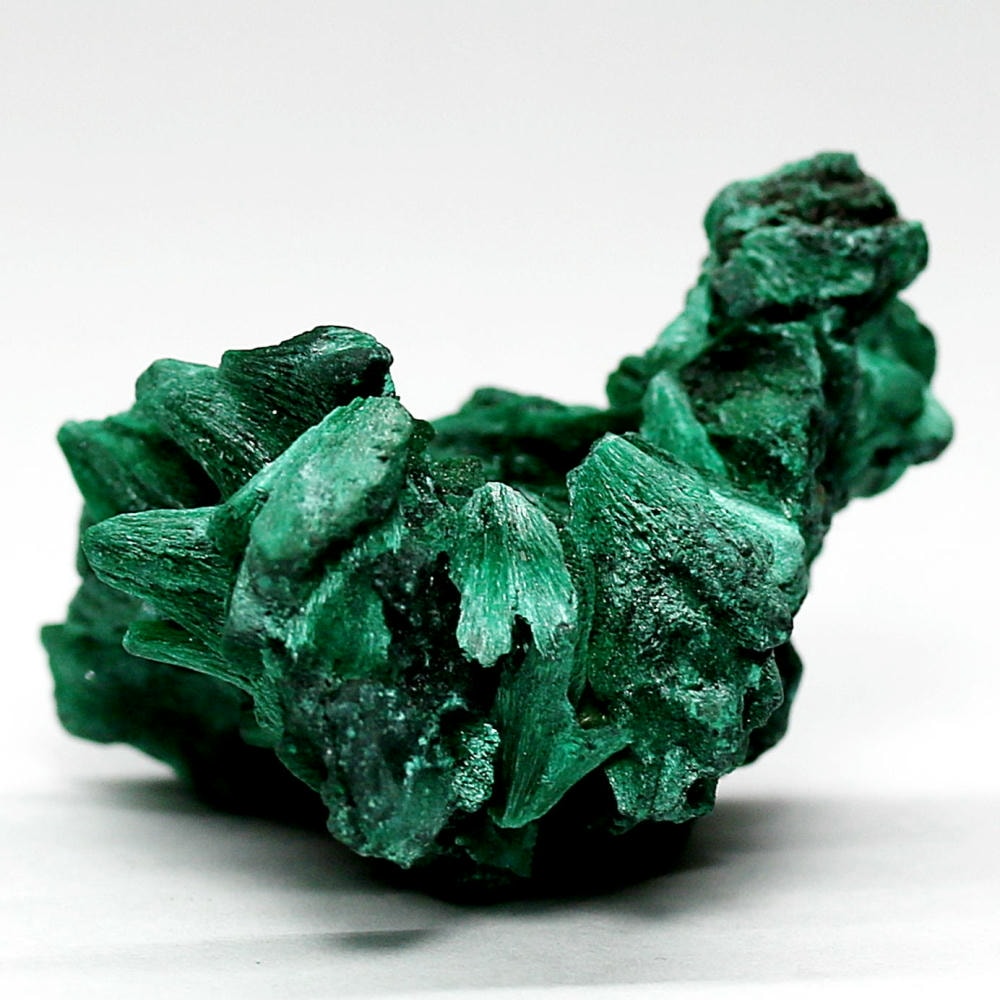 表面に現れた微細な繊維状の結晶が、まるで最高級のベルベット生地のように光を優しく反射し、「ビロード(ベルベット)マラカイト」という名の通り、しっとりとした深い光沢を放ちます。