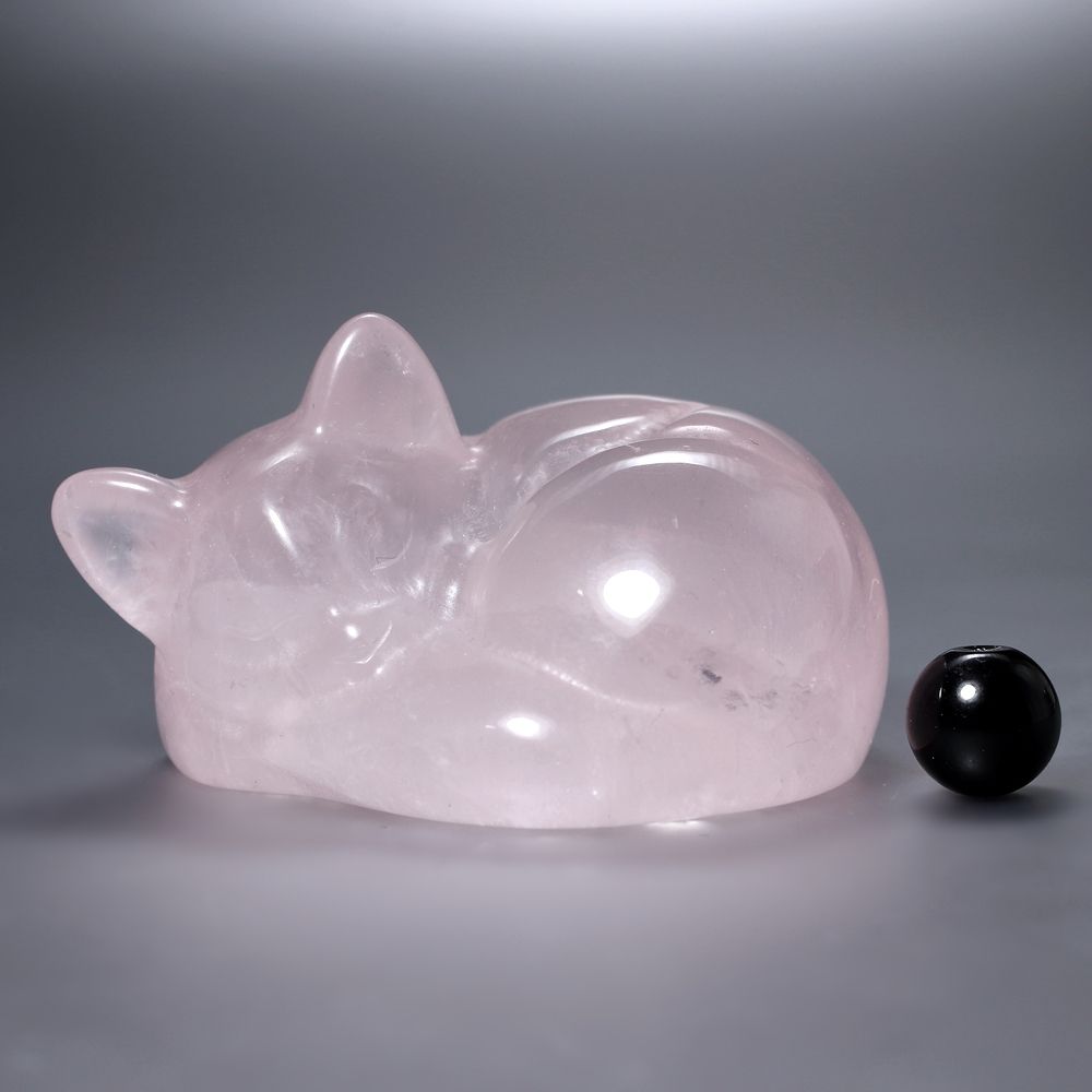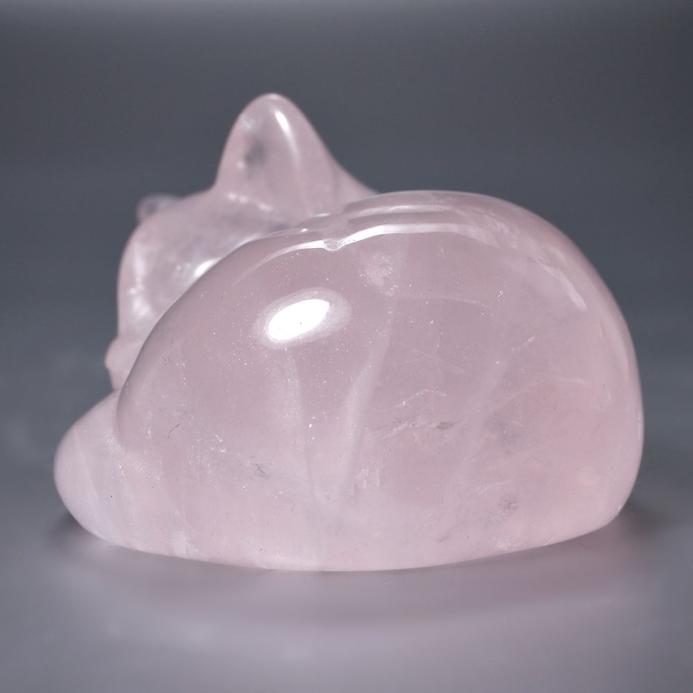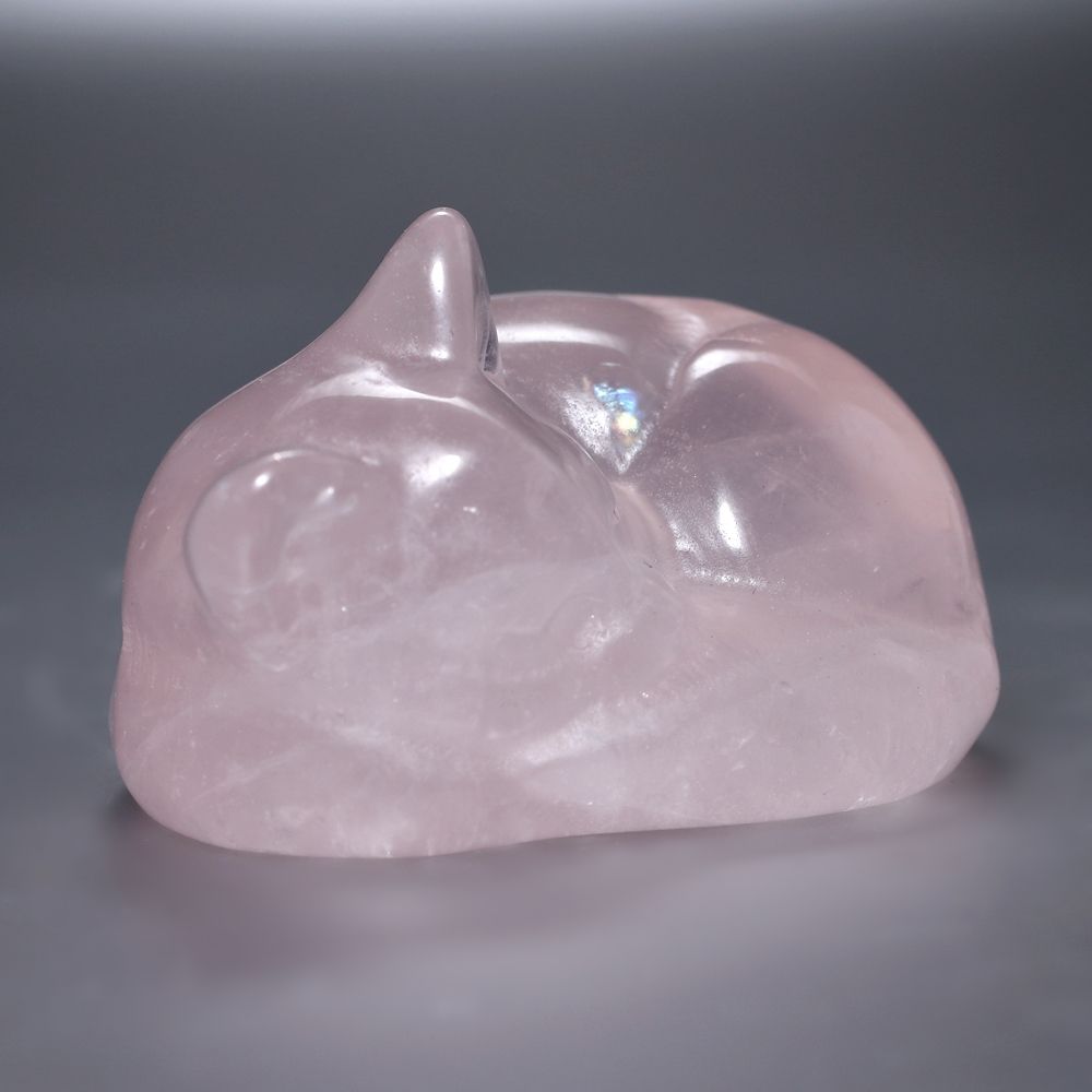 眠り猫ブラジル産ローズクォーツ (紅水晶彫刻)