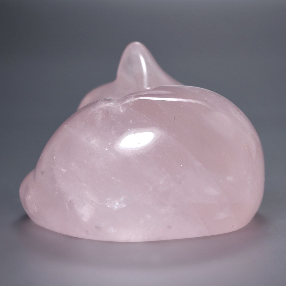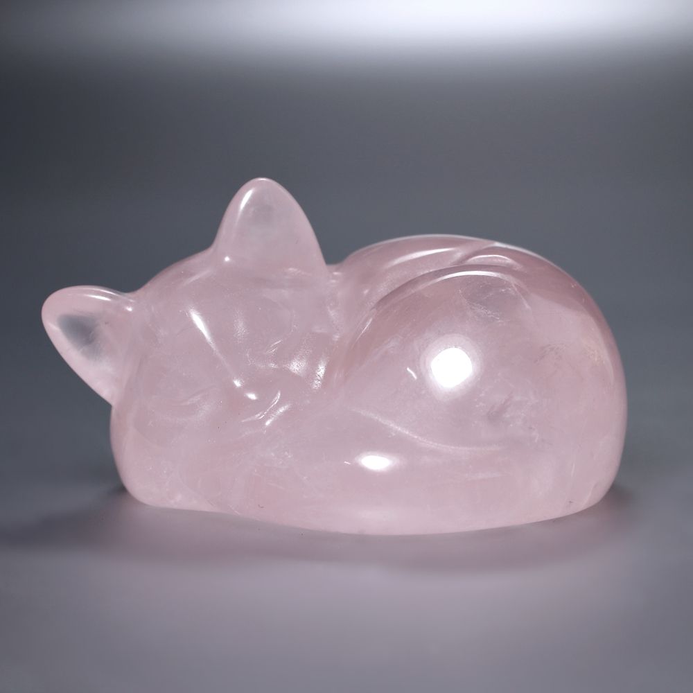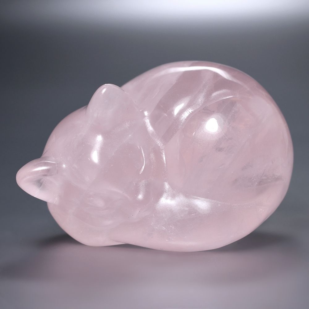 眠り猫ブラジル産ローズクォーツ (紅水晶彫刻)