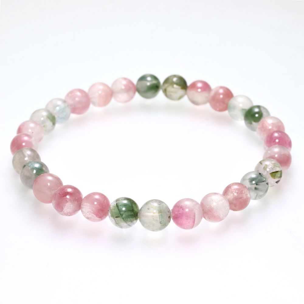 [3A++]マルチカラートルマリンブレスレット(約7mm玉/レアなインクォーツ粒ミックス)