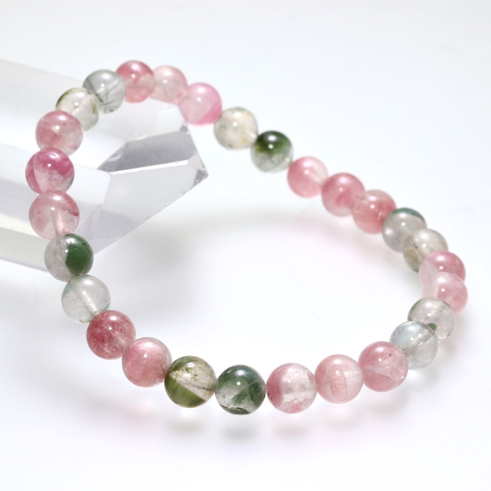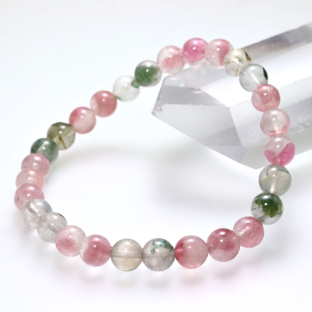 色によって意味合いが異なるトルマリンが一緒のブレスレットとして同調し合い、効果を増長させることでパワーストーンとしての効果も高くなると云われているそうです。