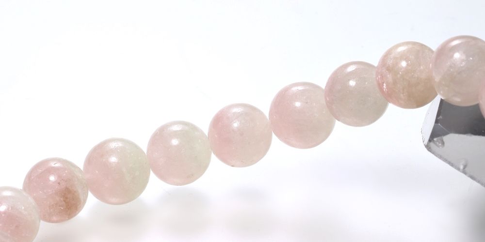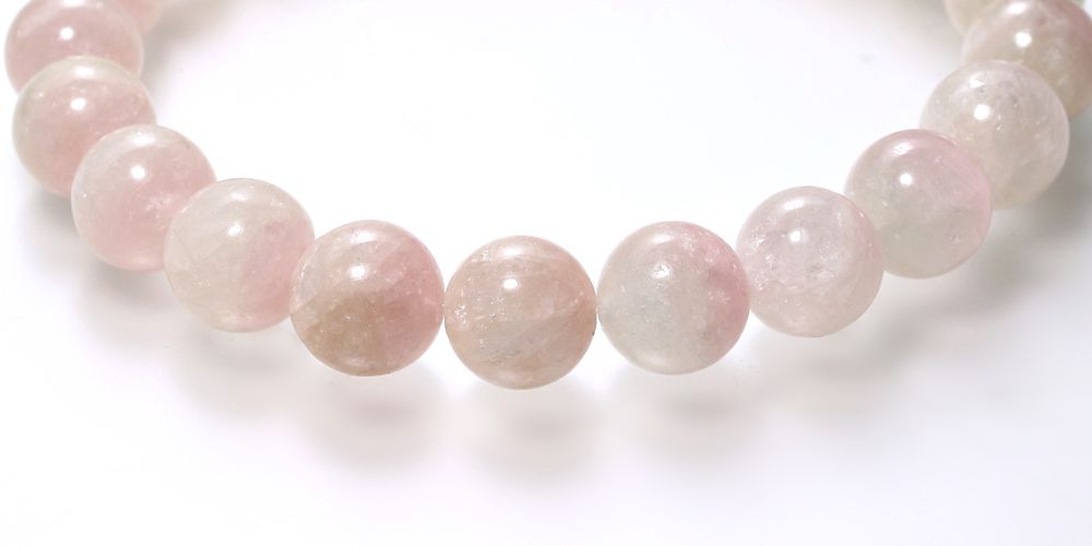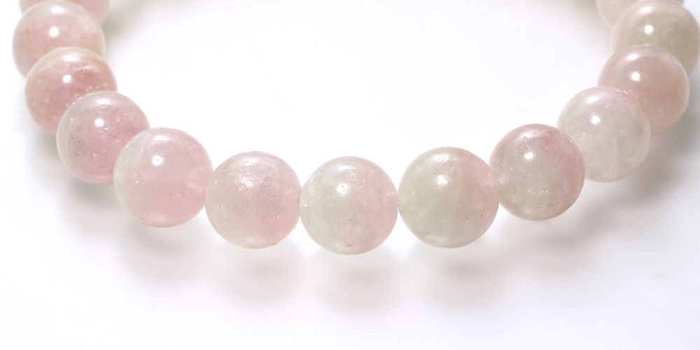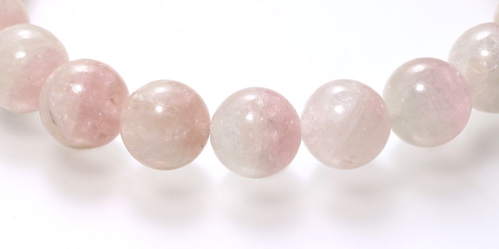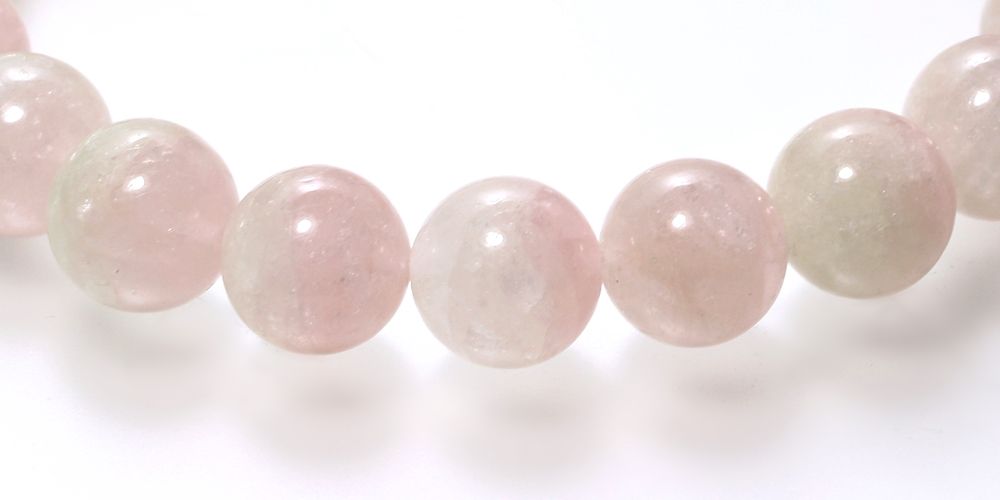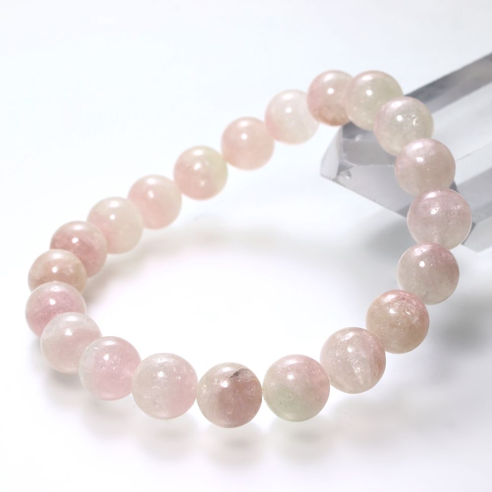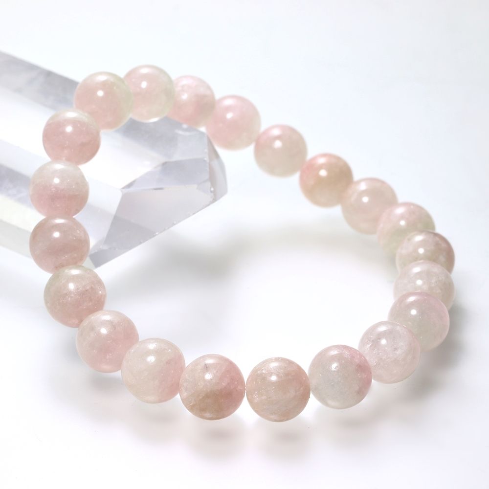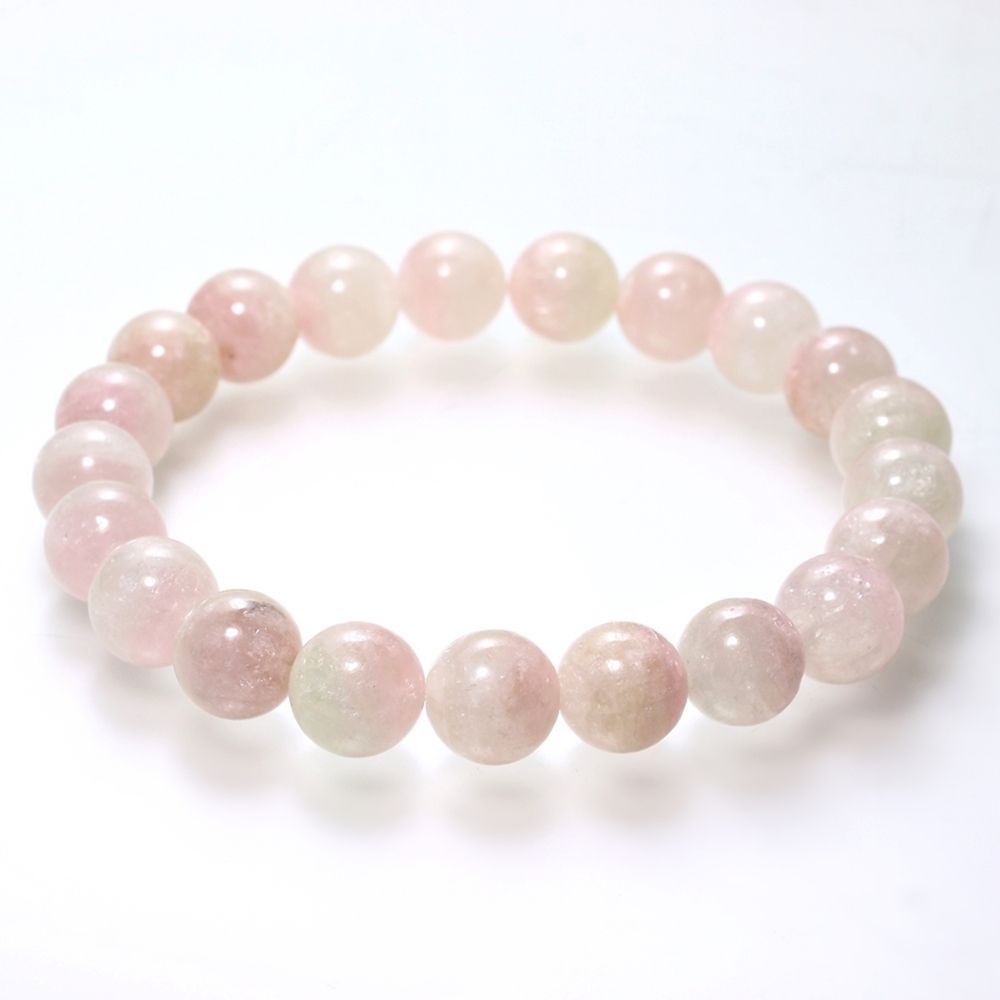 クリームカラーにほんのりピンクグリーンが入った珍しいタイプで、透明度こそほとんどございませんが、優しくて柔らかな色合いがなんとも愛らく “癒し系ブレスレット” に仕上がっております。