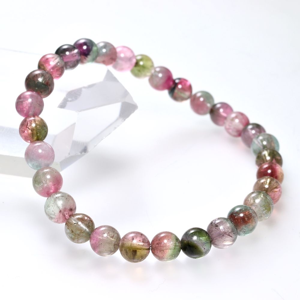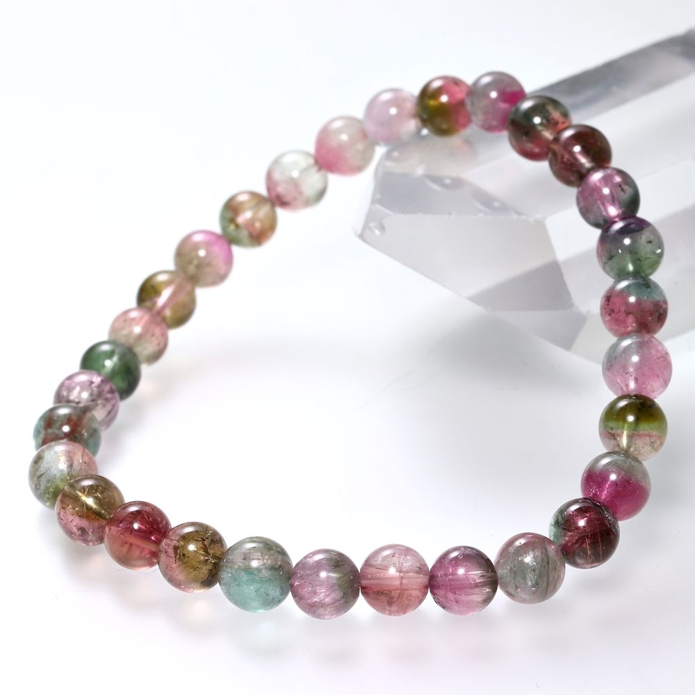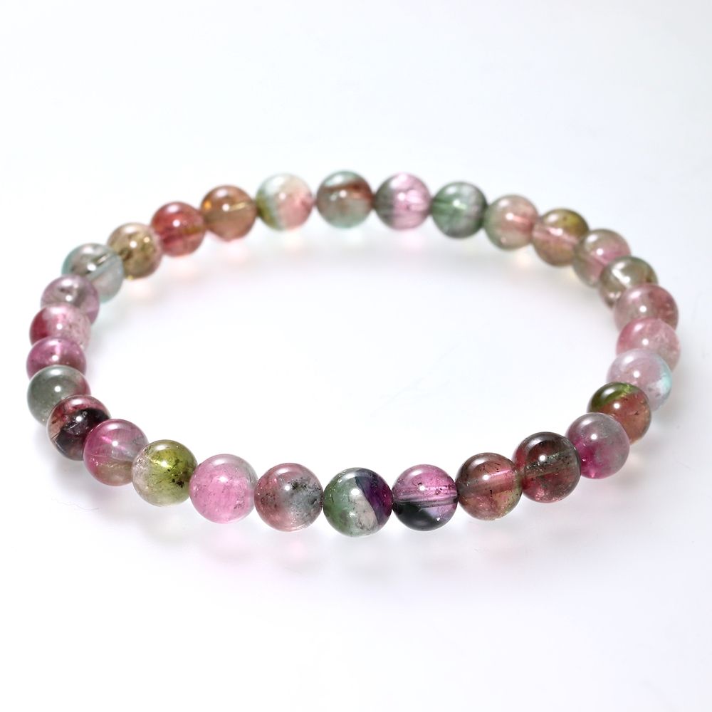 [高品質+]ウォーターメロントルマリンブレスレット(約6mm玉/キャッツアイが出る玉もあり!)