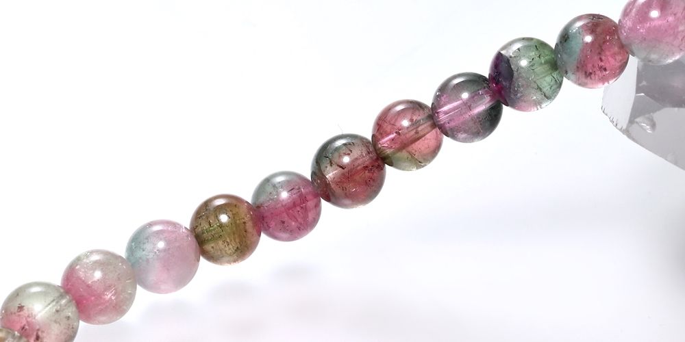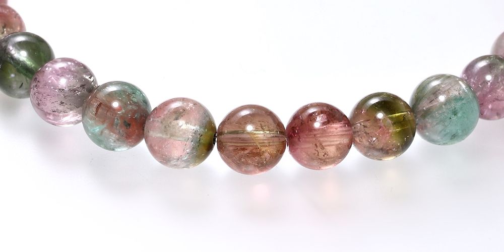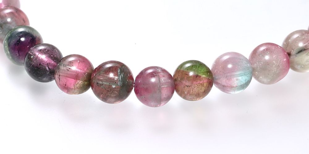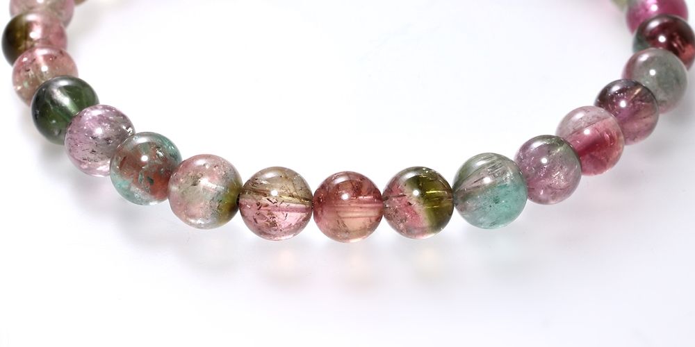 ひとつの粒にピンクレッドとグリーンの2配色有する、数あるトルマリンの中でも特に希少価値の高いウォーターメロントルマリンブレスレットでございます。