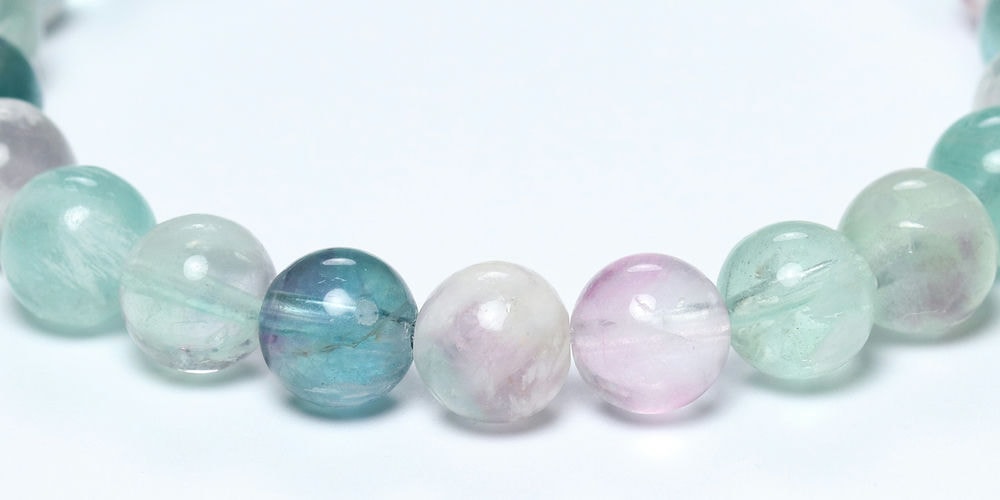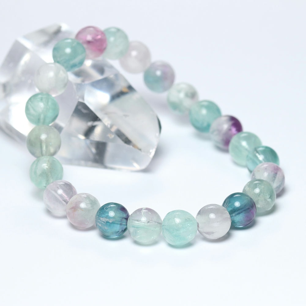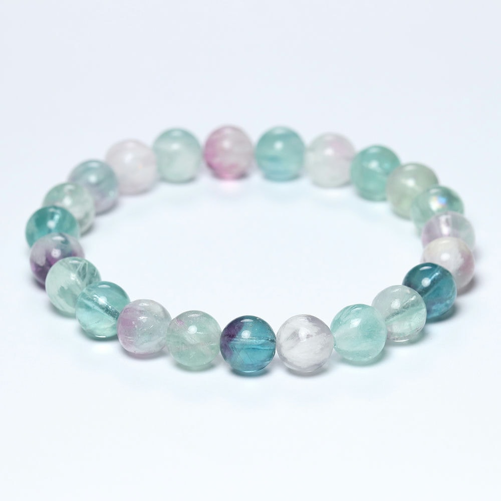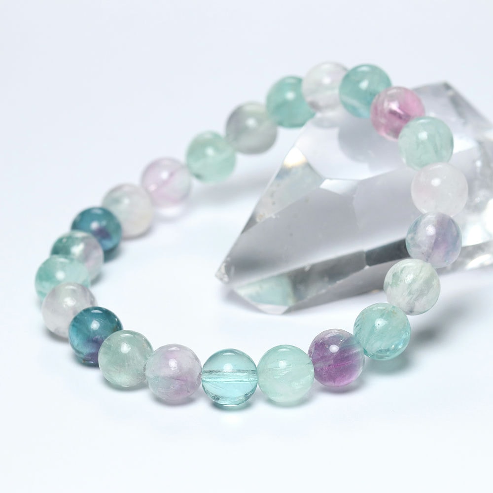 記念特価★[高品質]中国産ミックスフェザーフローライトブレスレット(約8.5mm玉)