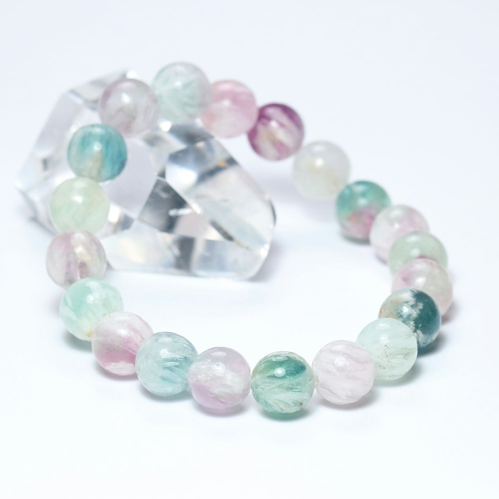記念特価★[高品質]中国産エンジェルフェザーフローライトミックスカラーブレスレット(約10.5mm玉)¥5,000クイックガイド送料