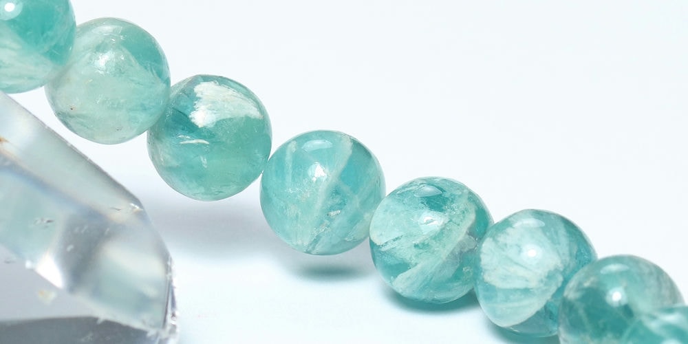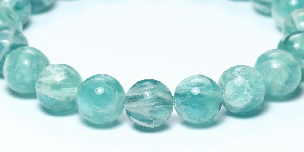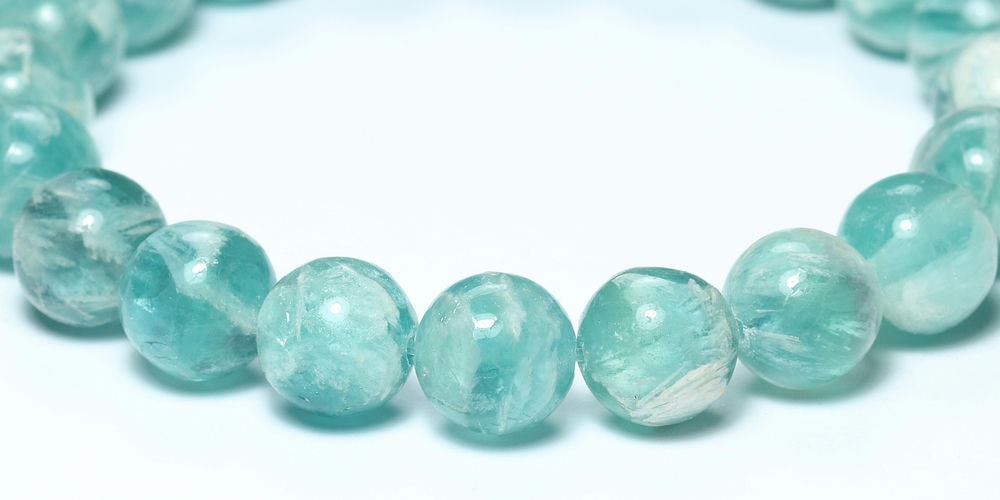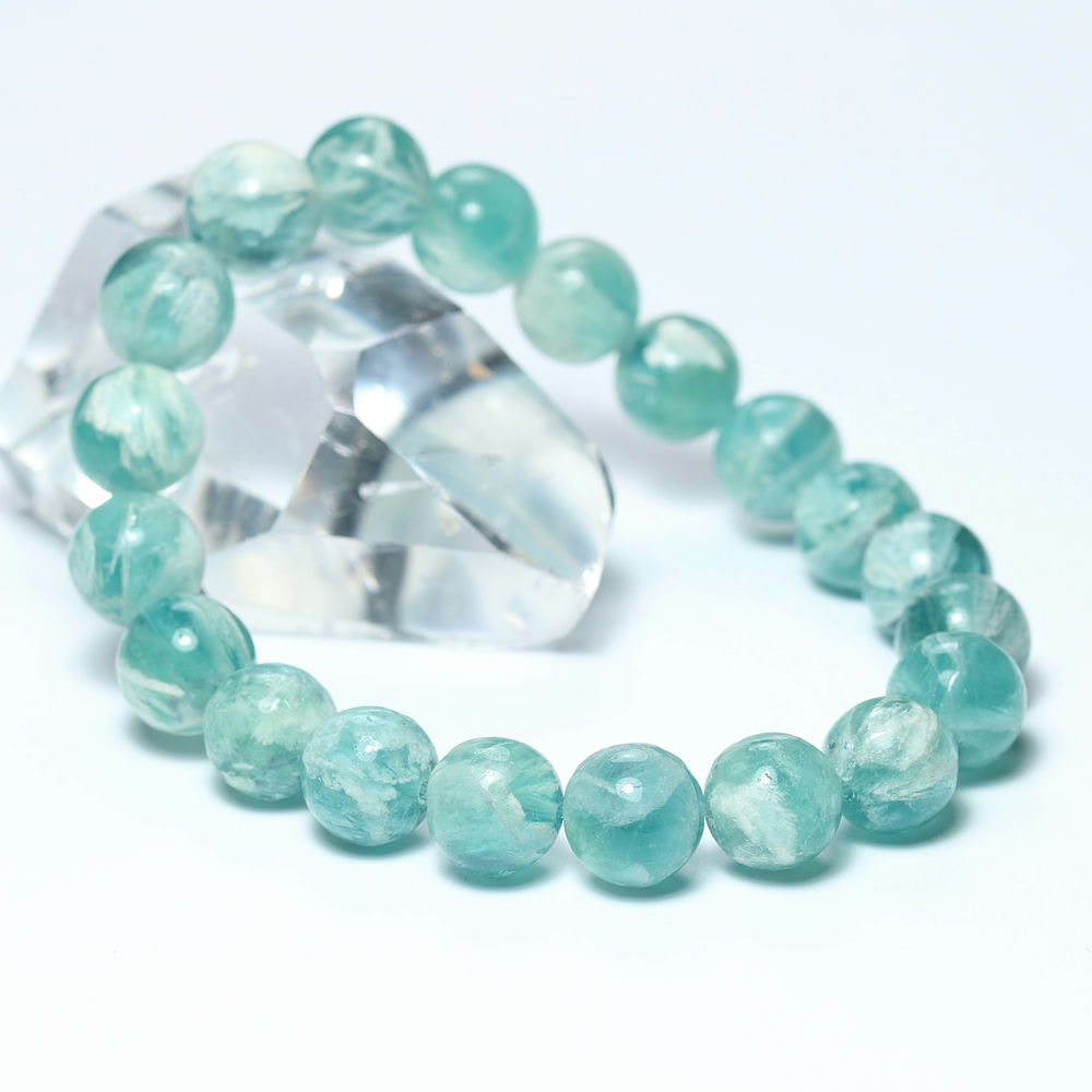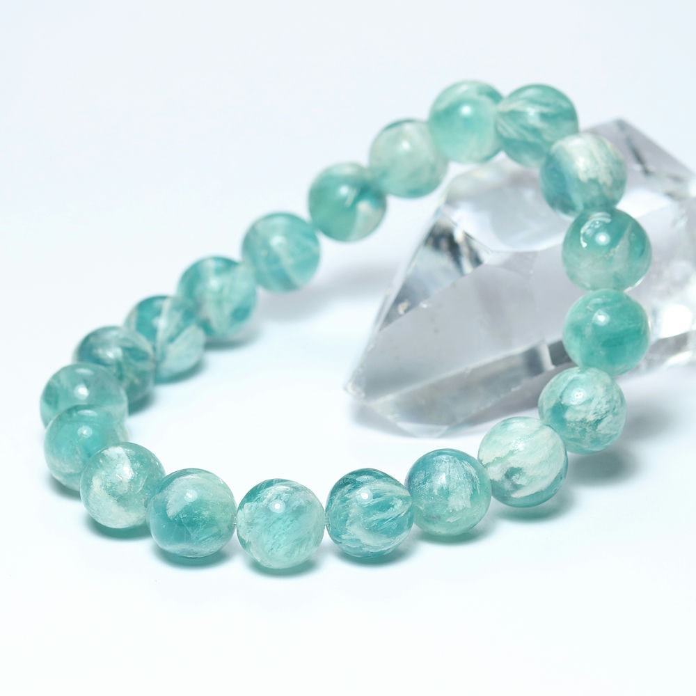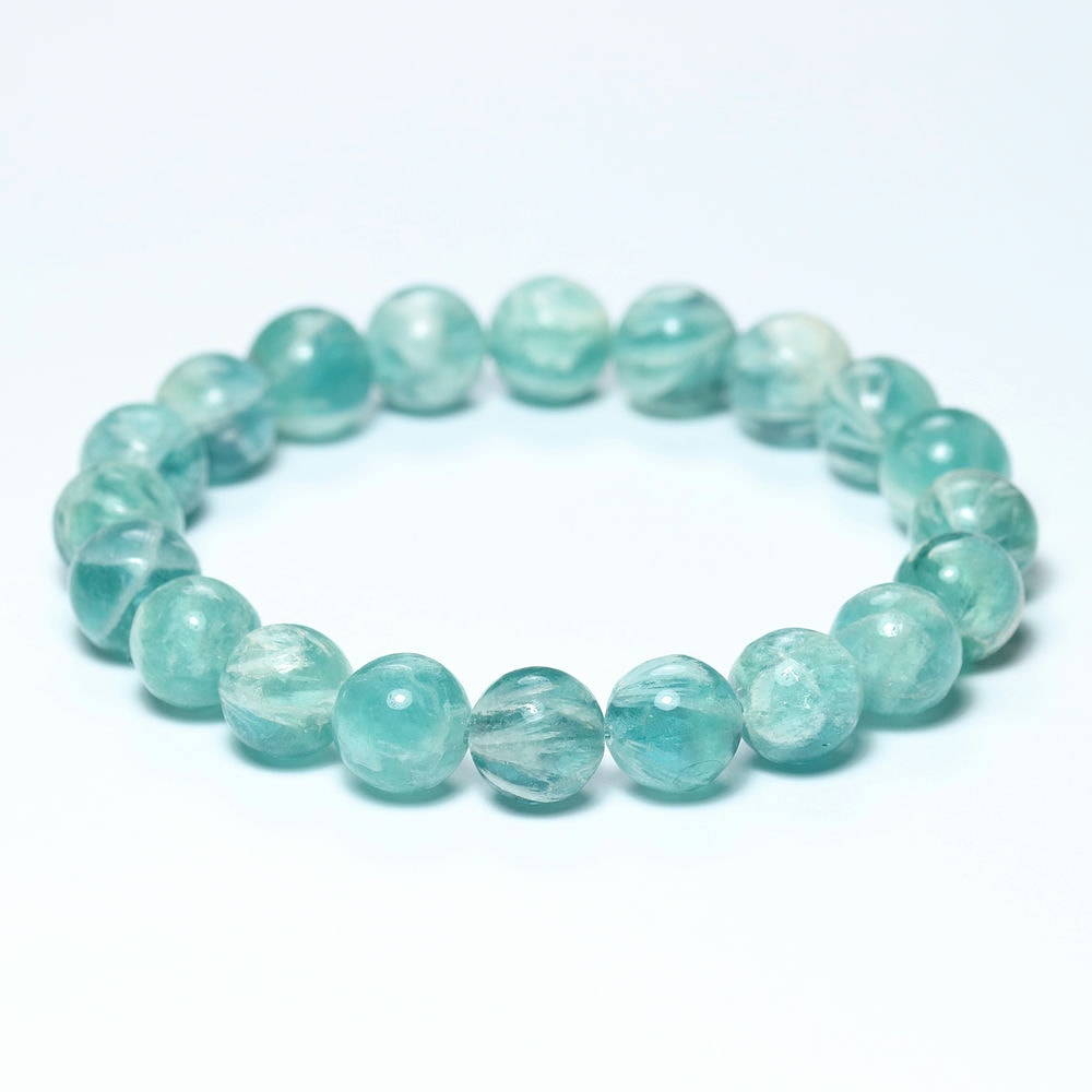 記念特価★[高品質]中国産エンジェルフェザーブルーフローライトブレスレット(約10mm玉)¥5,000クイックガイド送料