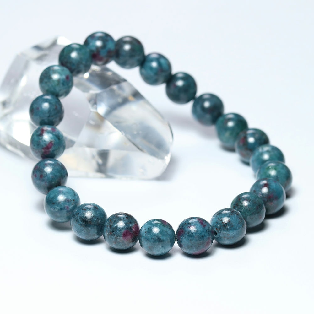 記念特価★[高品質]インド産ルビーインカイヤナイトブレスレット(約8.5mm玉)