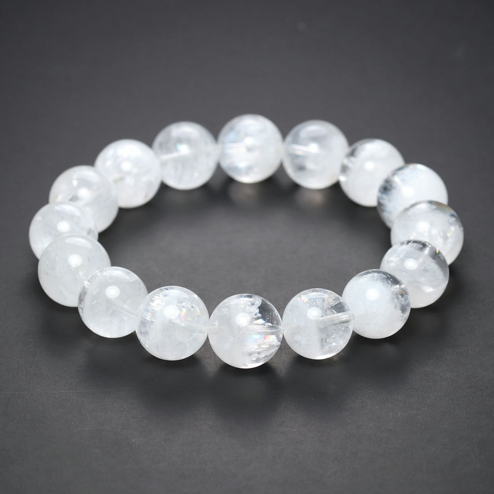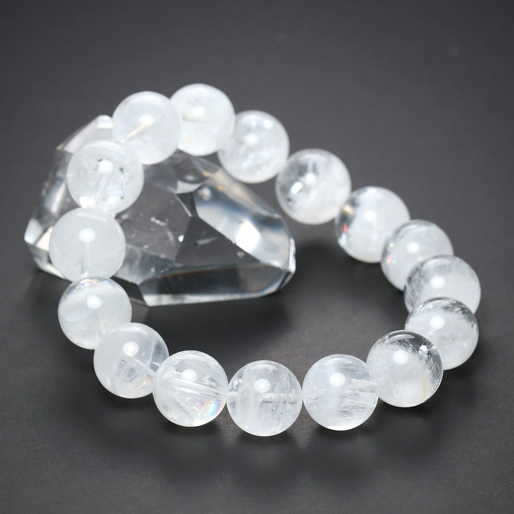 記念特価★[全玉レインボー!高品質++]マダガスカル産ホワイトスノーステップファントムブレスレット(約13.5mm玉)¥24,000クイックガイド送料