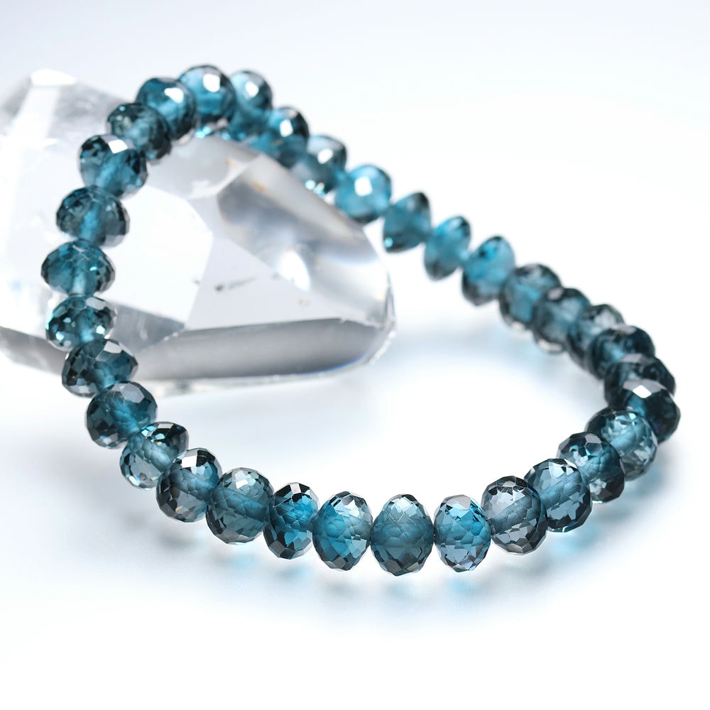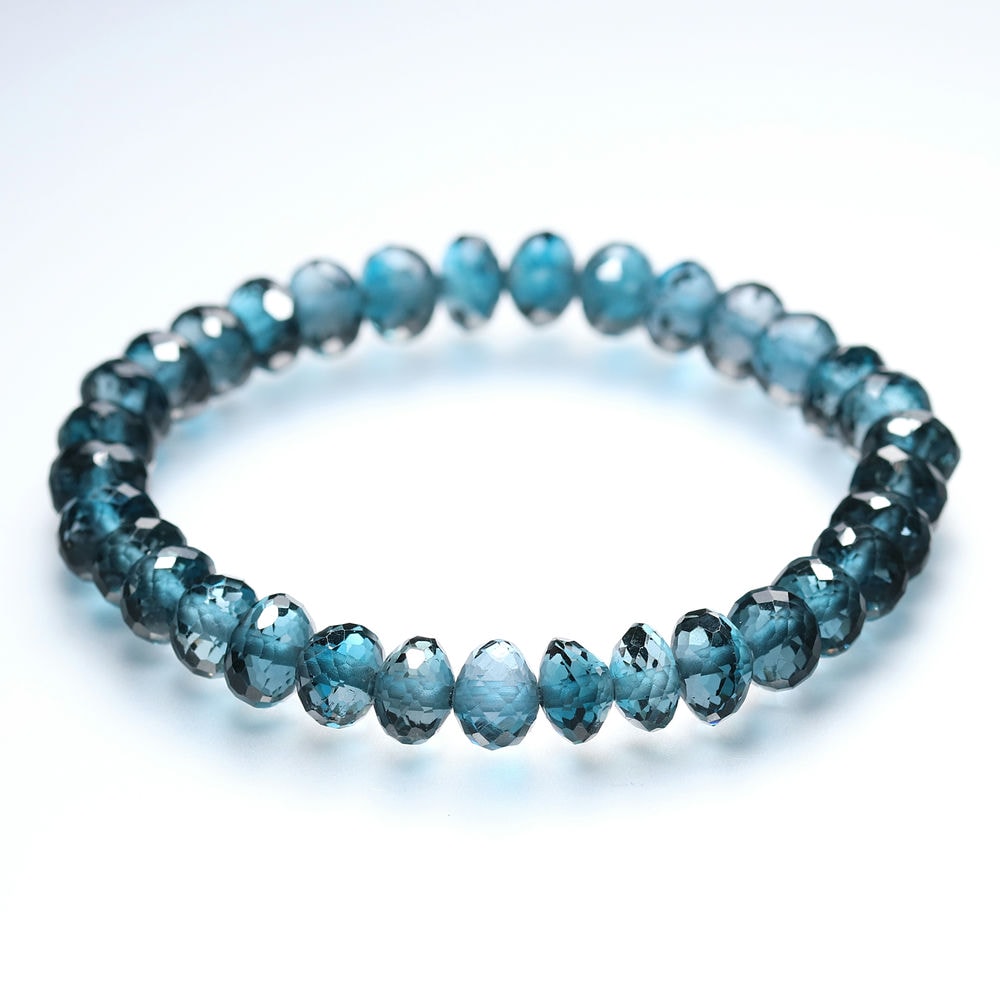 記念特価★[宝石質]ブラジル産ロンドンブルートパーズブレスレット(約8.5mm玉・ボタンカット)