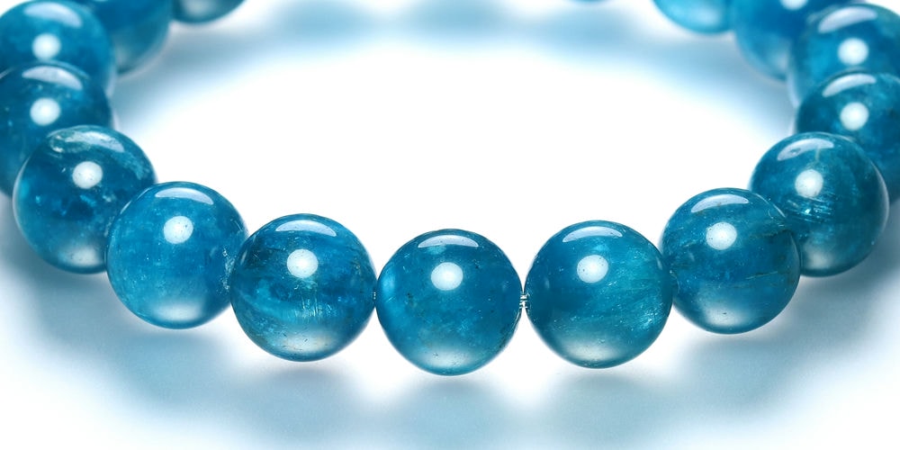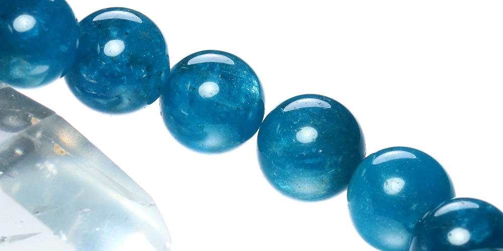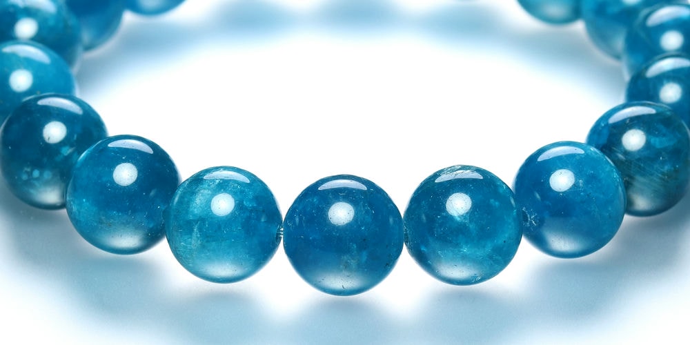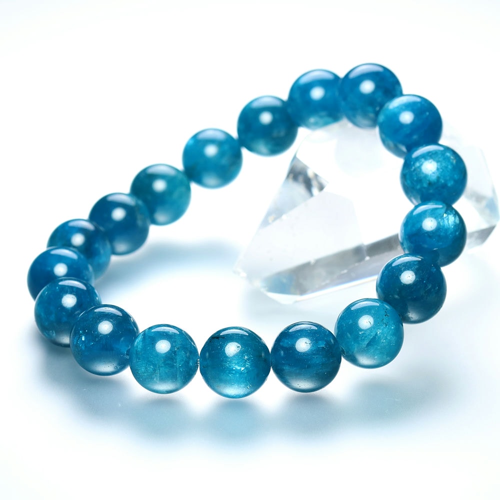 美しい蛍光ブルー!透けるアパタイトブレスレットをお求めやすく
