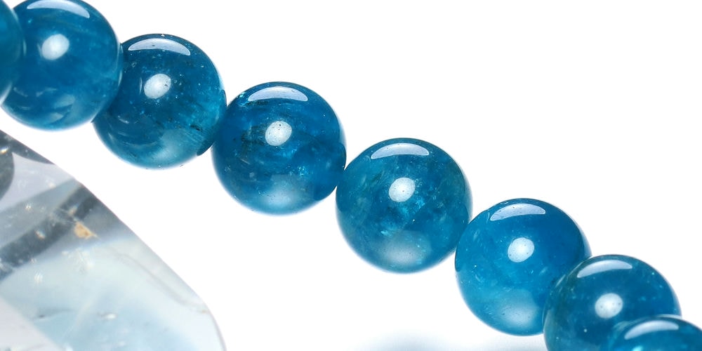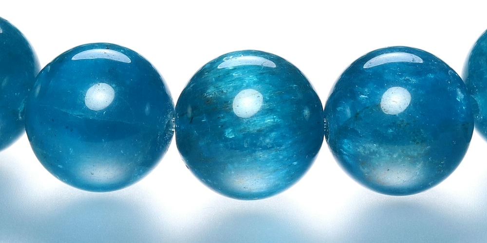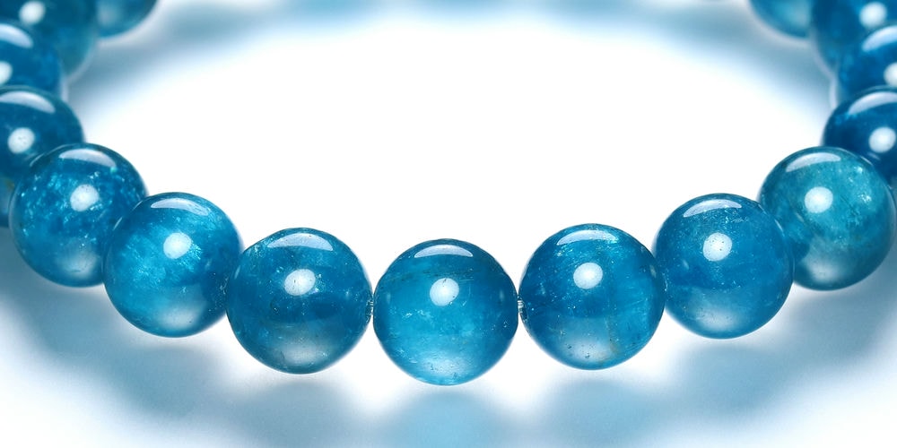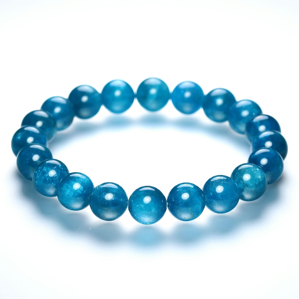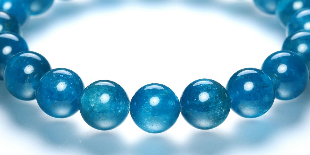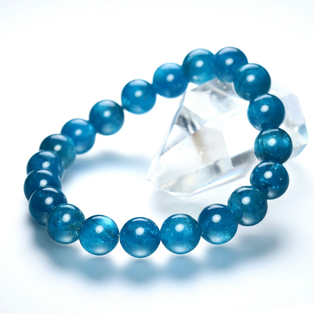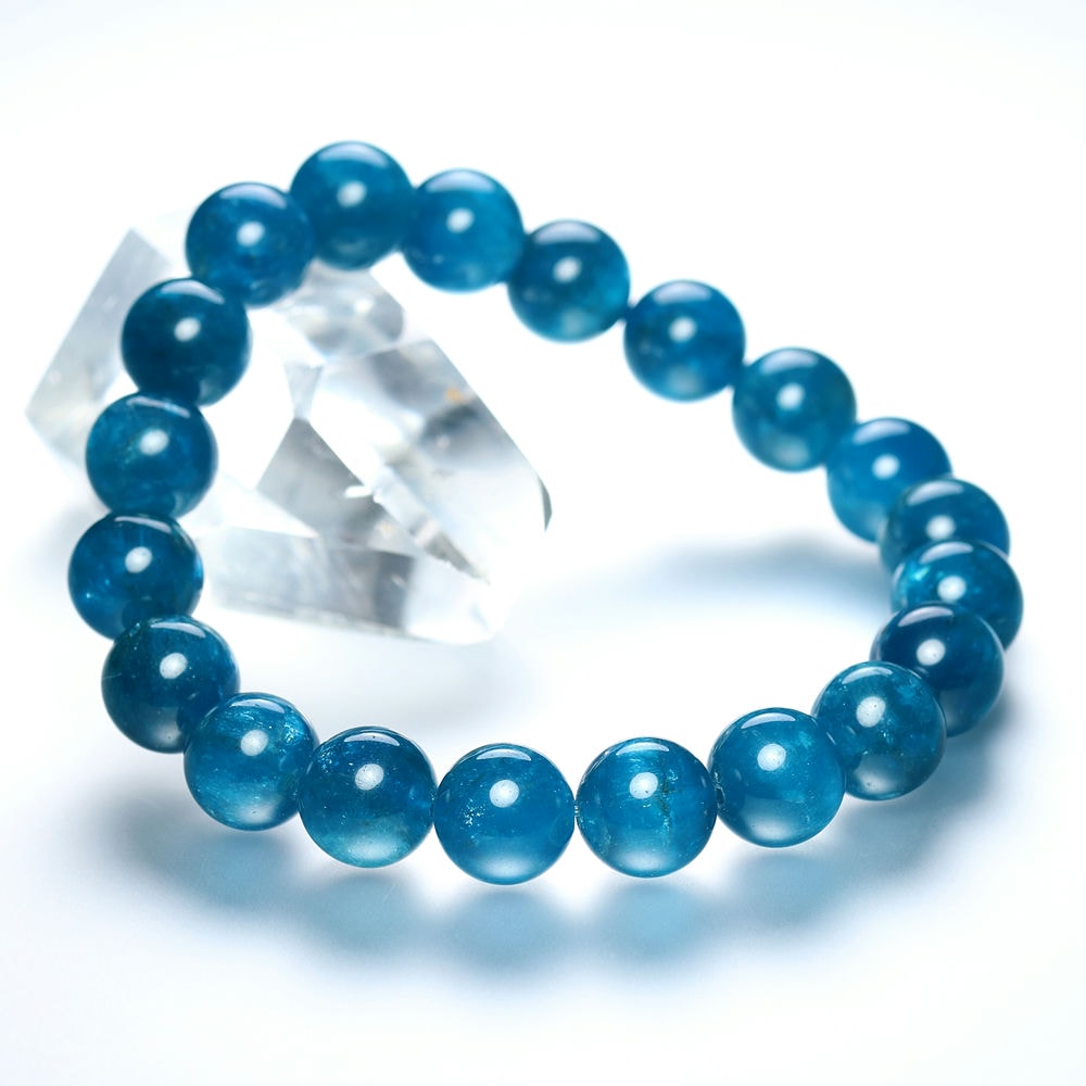 美しい蛍光ブルー!透けるアパタイトブレスレットをお求めやすく
