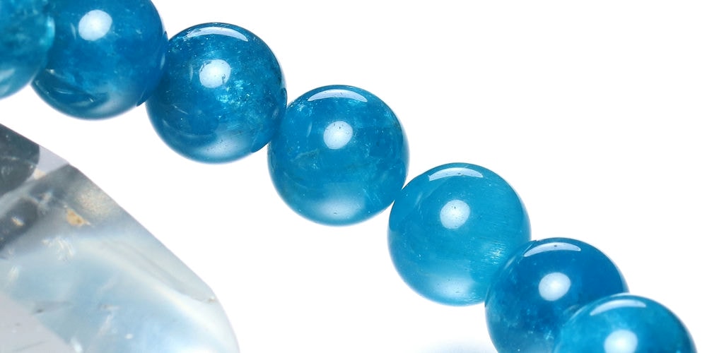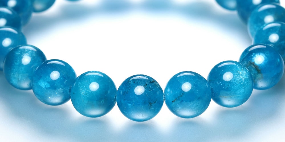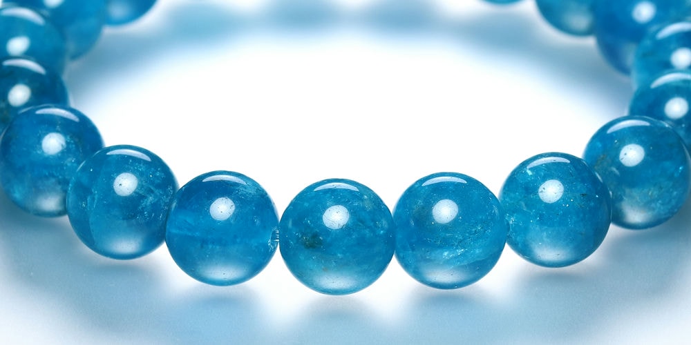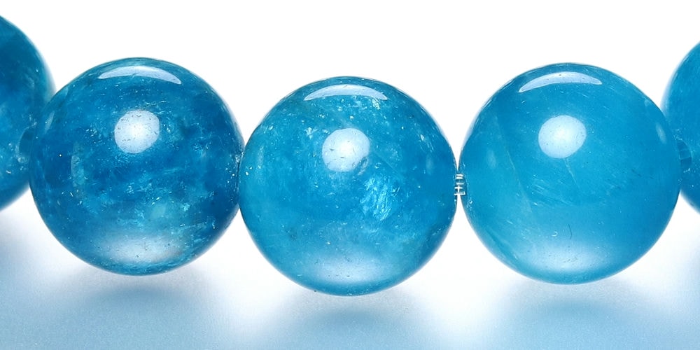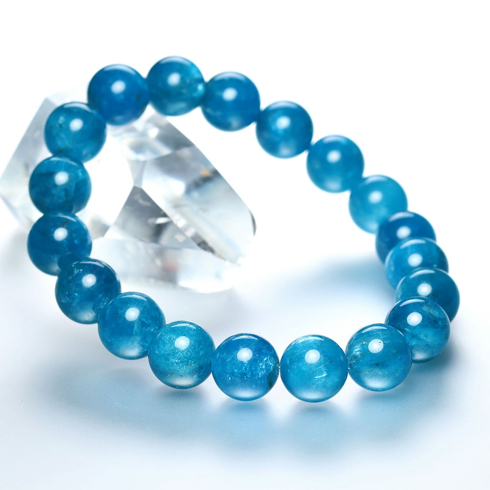 美しい蛍光ブルー!透けるアパタイトブレスレットをお求めやすく