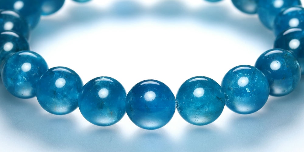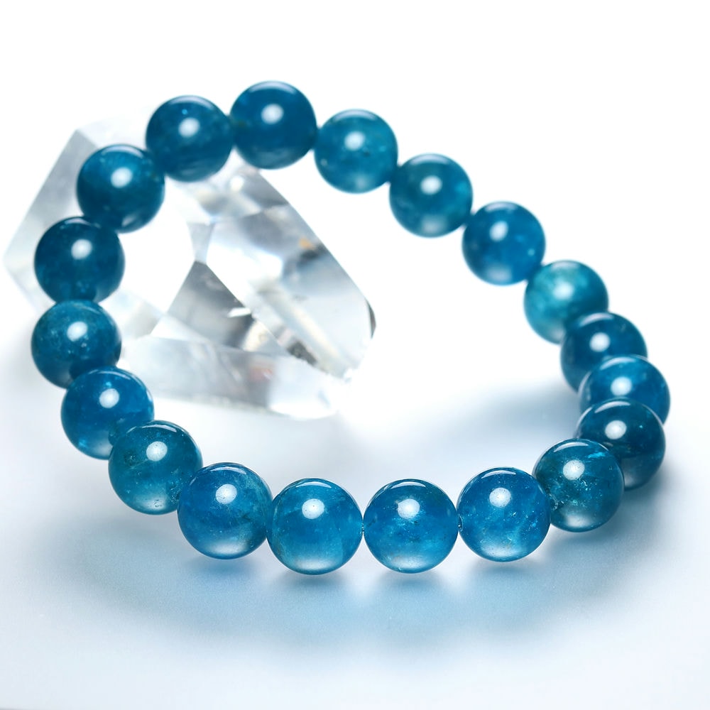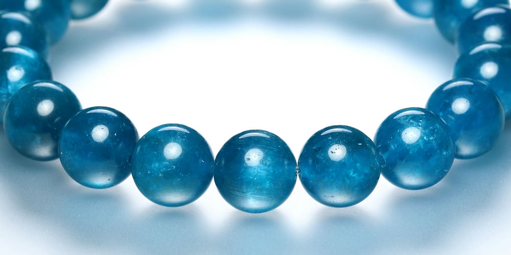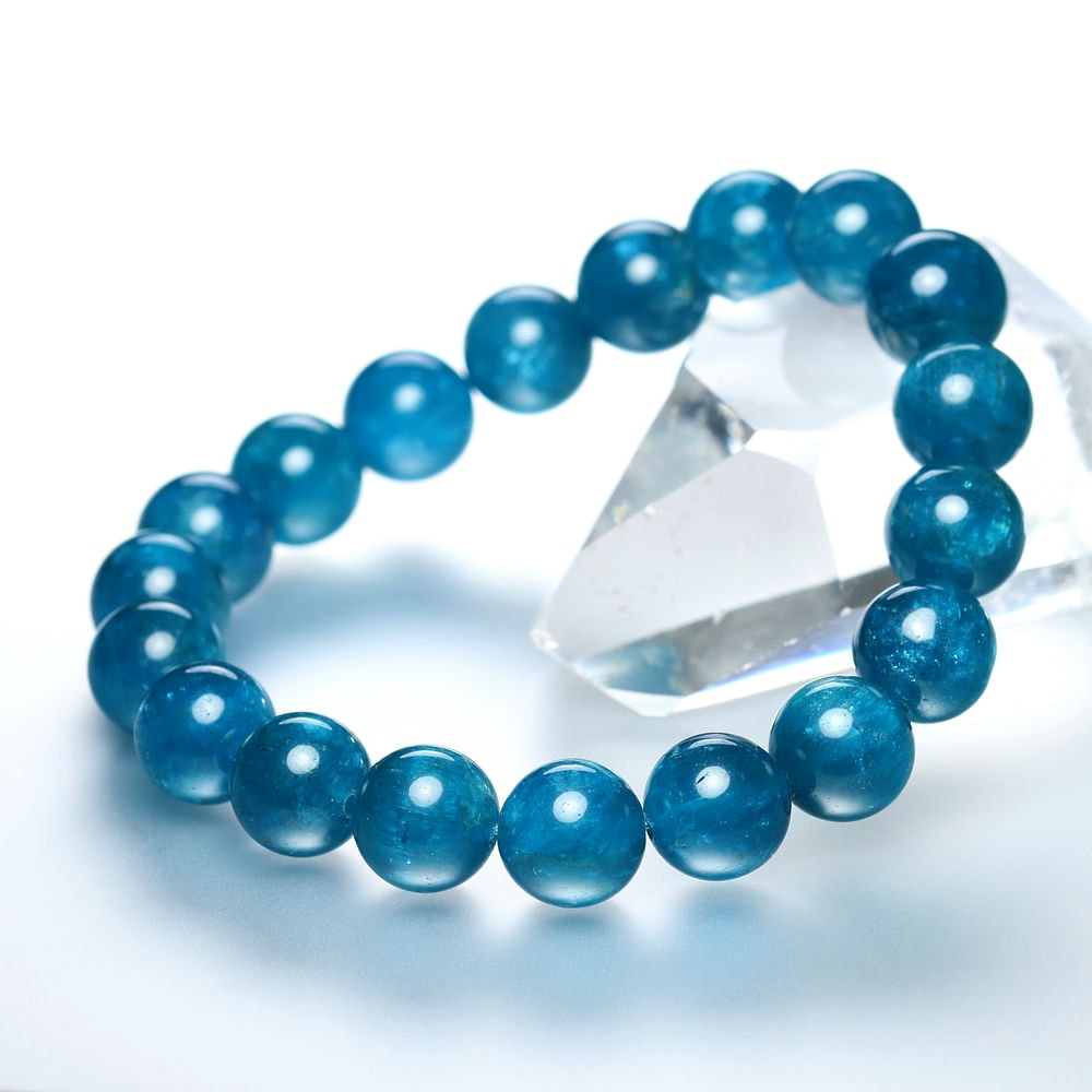 美しい蛍光ブルー!透けるアパタイトブレスレットをお求めやすく