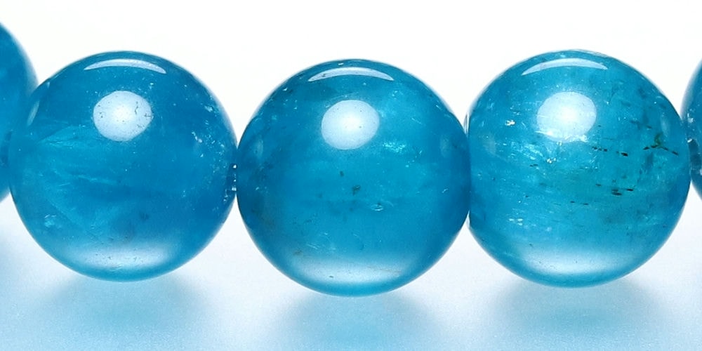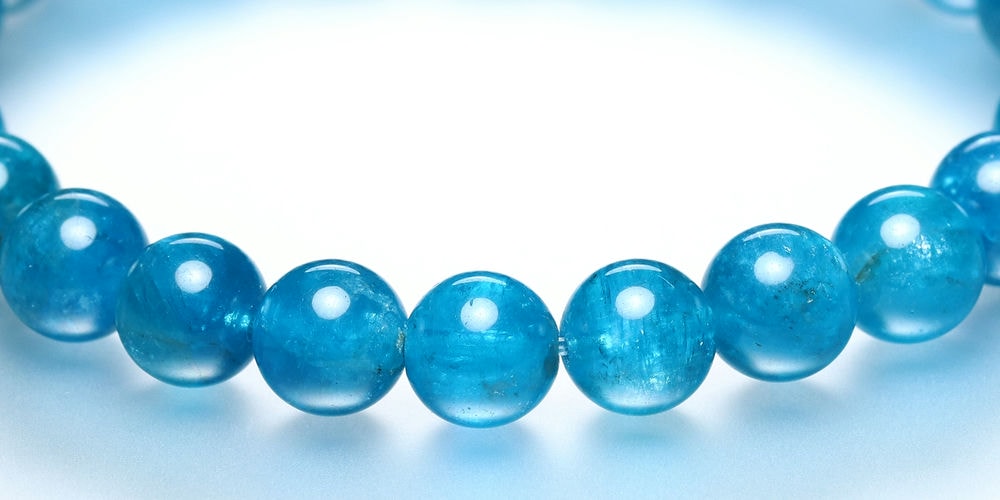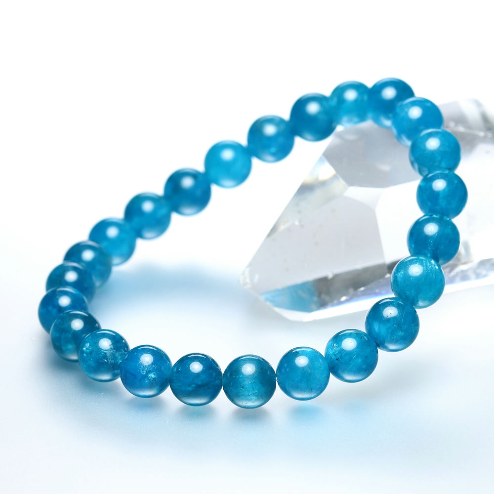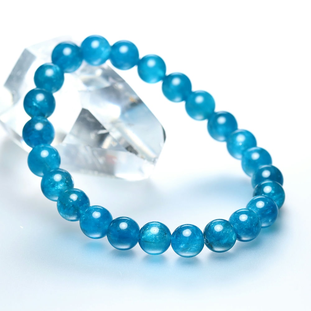 美しい蛍光ブルー!透けるアパタイトブレスレットをお求めやすく