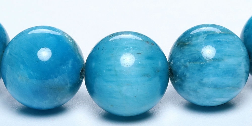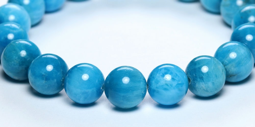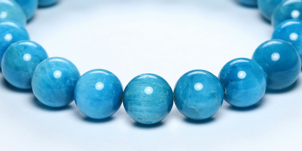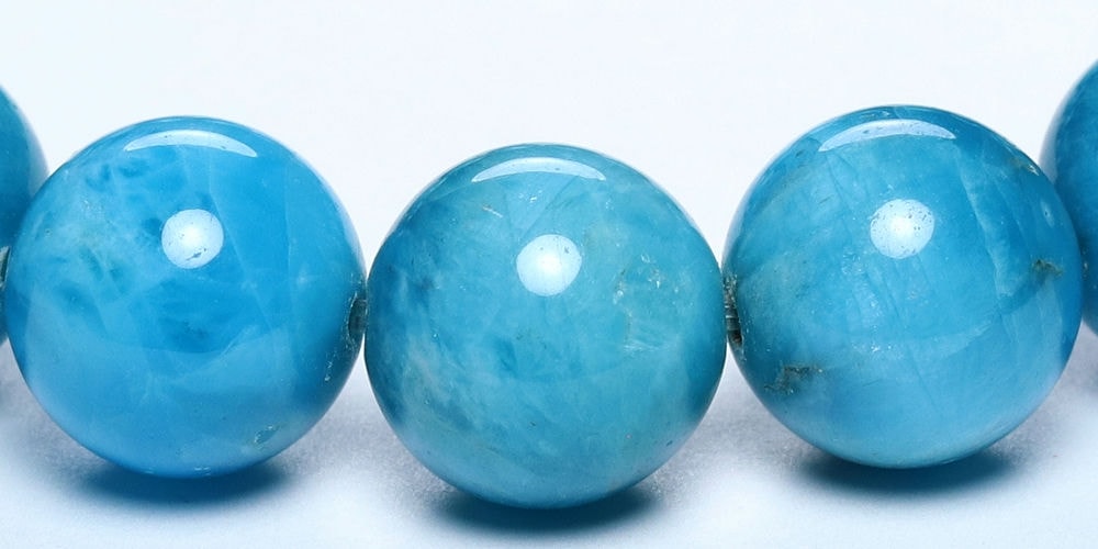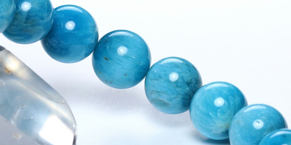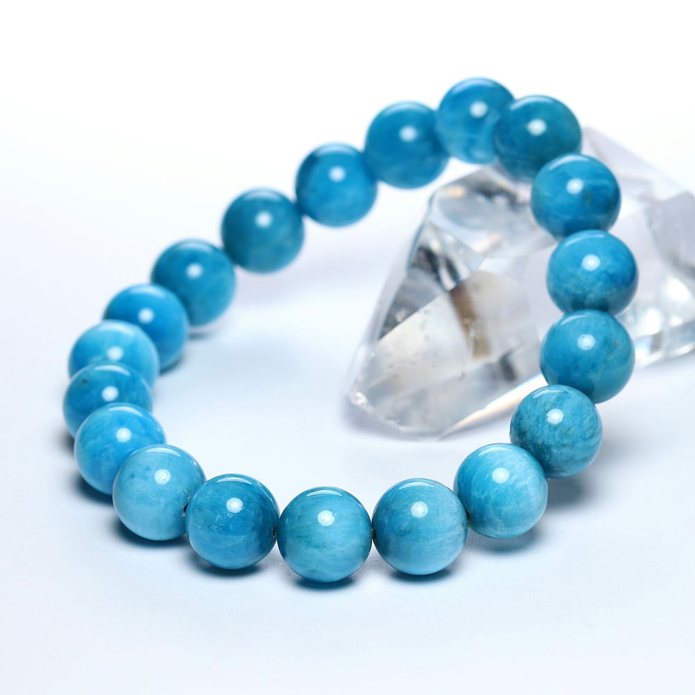 ご覧のお品は、澄み渡る青空のように晴れやかなブルーが特徴のアパタイトブレスレットです