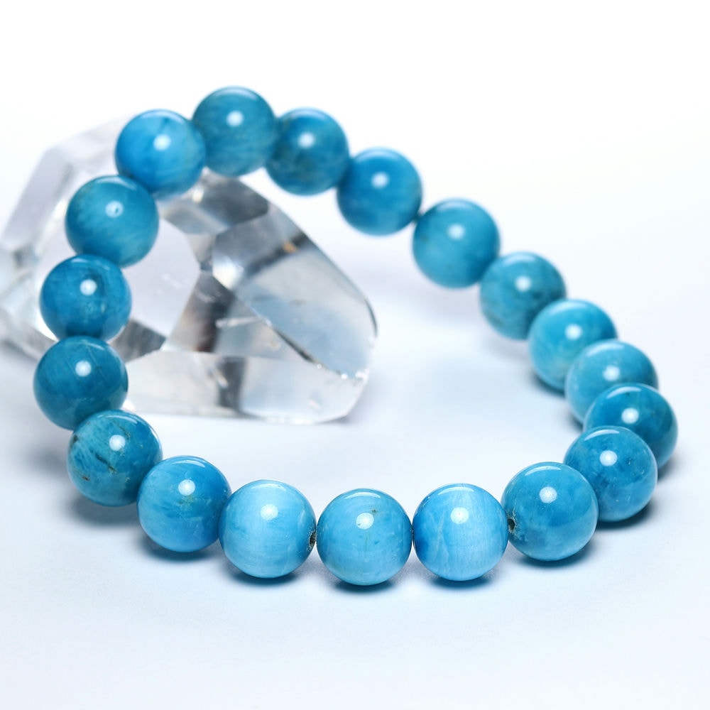 [高品質]マダガスカル産アパタイトブレスレット(約10.5mm玉・キャッツアイ効果あり)¥11,000クイックガイド送料