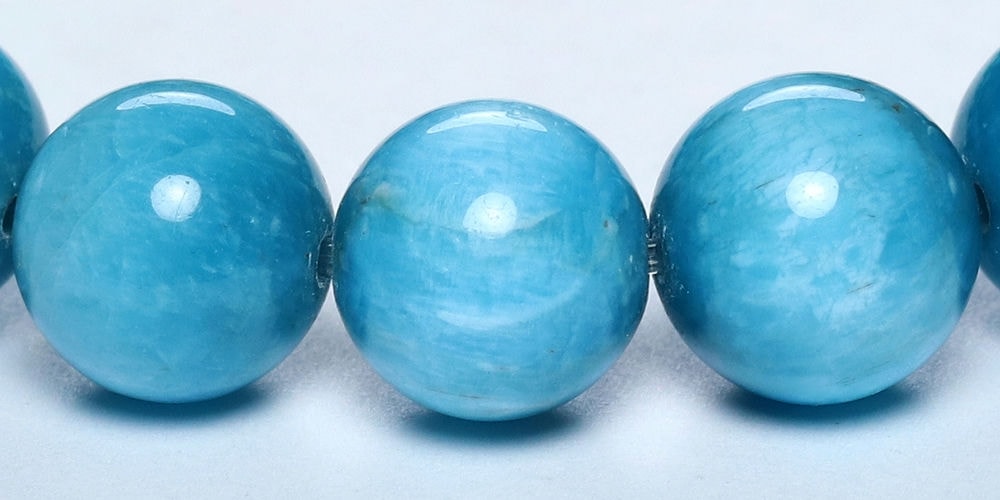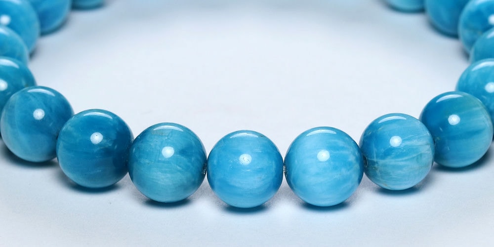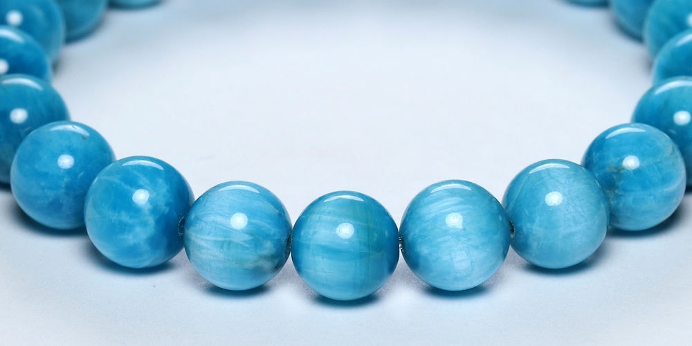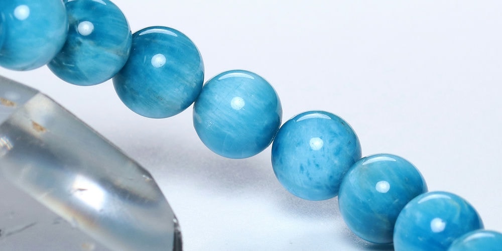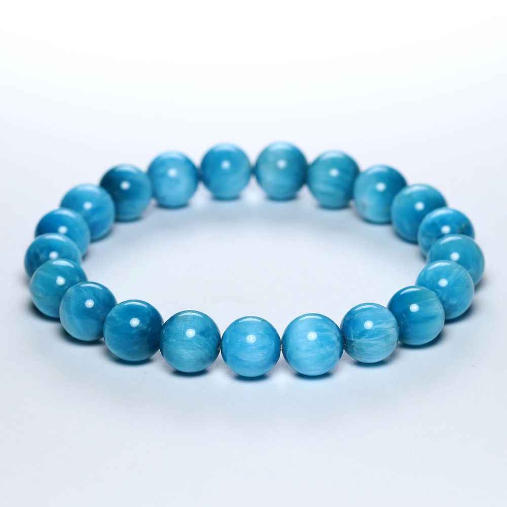 ご覧のお品は、澄み渡る青空のように晴れやかなブルーが特徴のアパタイトブレスレットです