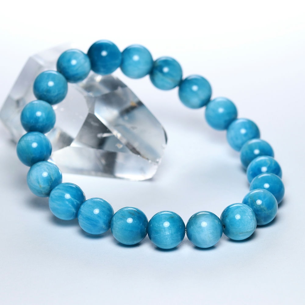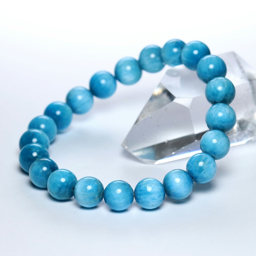 [高品質]マダガスカル産アパタイトブレスレット(約9mm玉・キャッツアイ効果あり)¥8,000クイックガイド送料