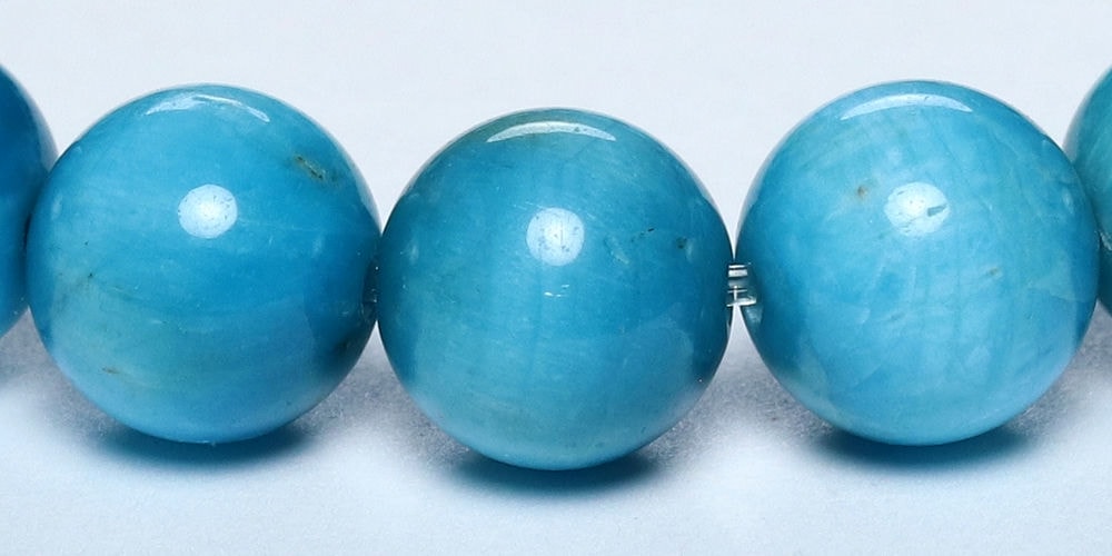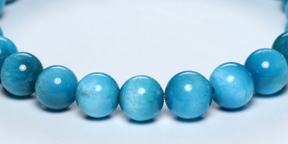 ご覧のお品は、澄み渡る青空のように晴れやかなブルーが特徴のアパタイトブレスレットです