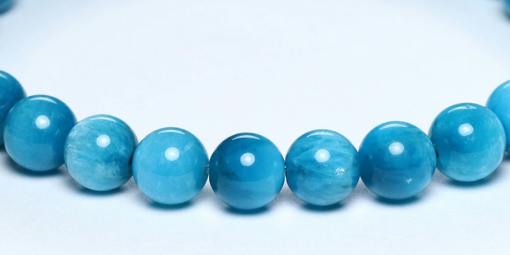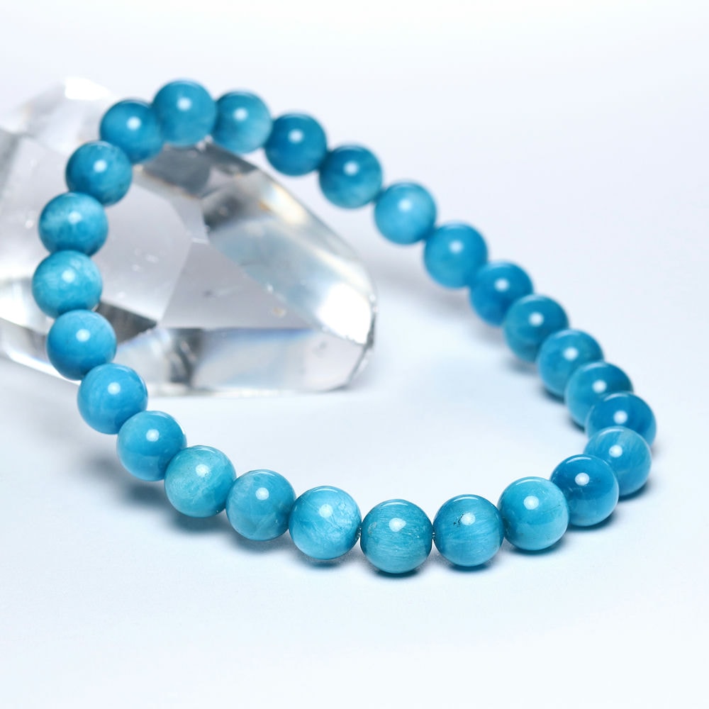 ご覧のお品は、澄み渡る青空のように晴れやかなブルーが特徴のアパタイトブレスレットです
