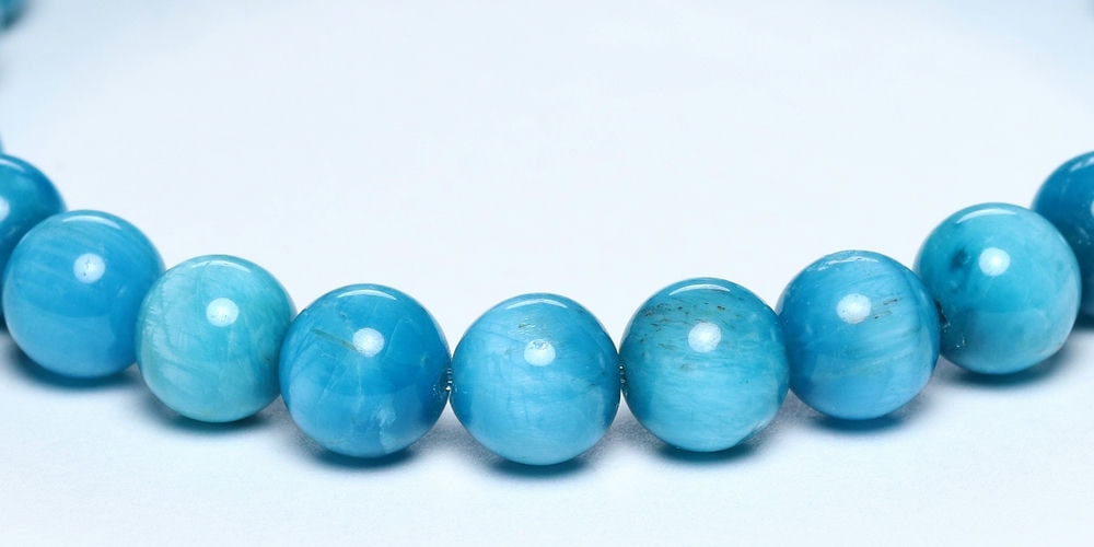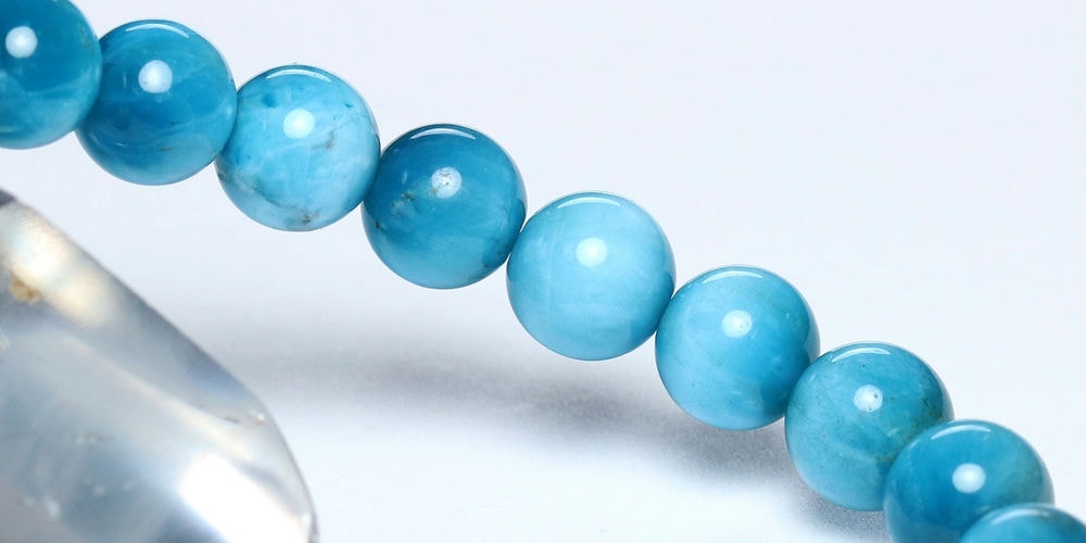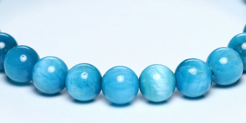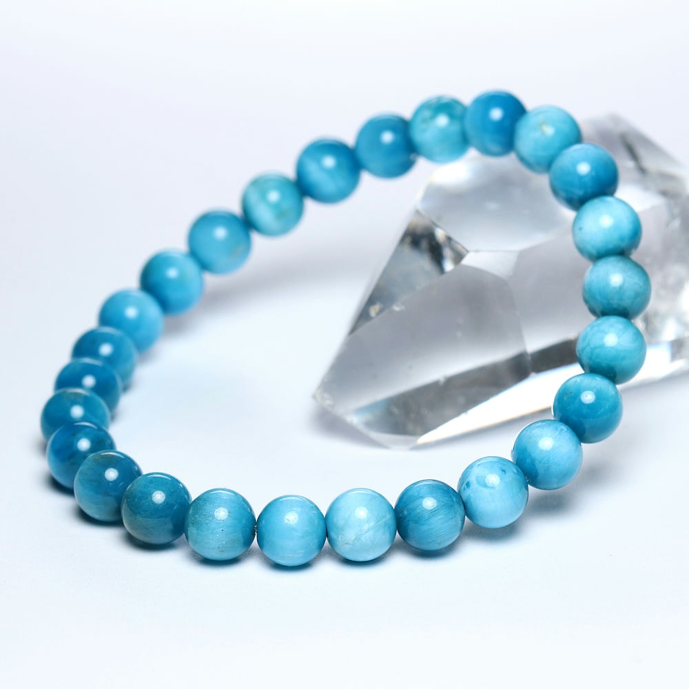 ご覧のお品は、澄み渡る青空のように晴れやかなブルーが特徴のアパタイトブレスレットです