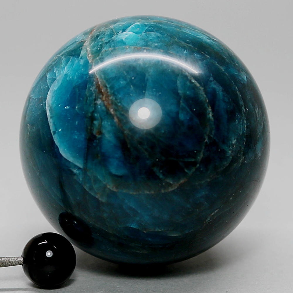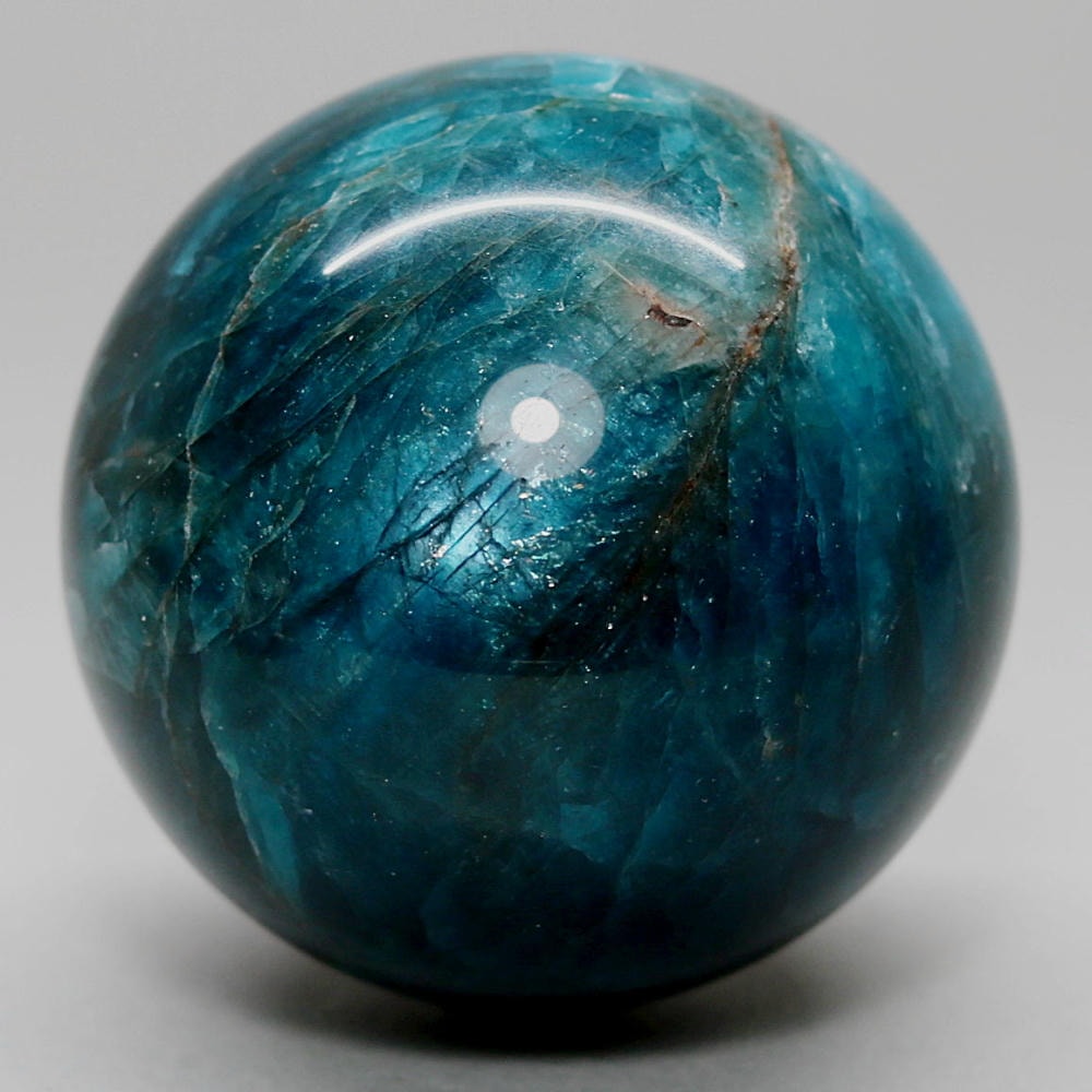 大きな原石が採れづらいアパタイトにとって、良質な丸玉の存在は珍しく、市場価値も高いと言えます。