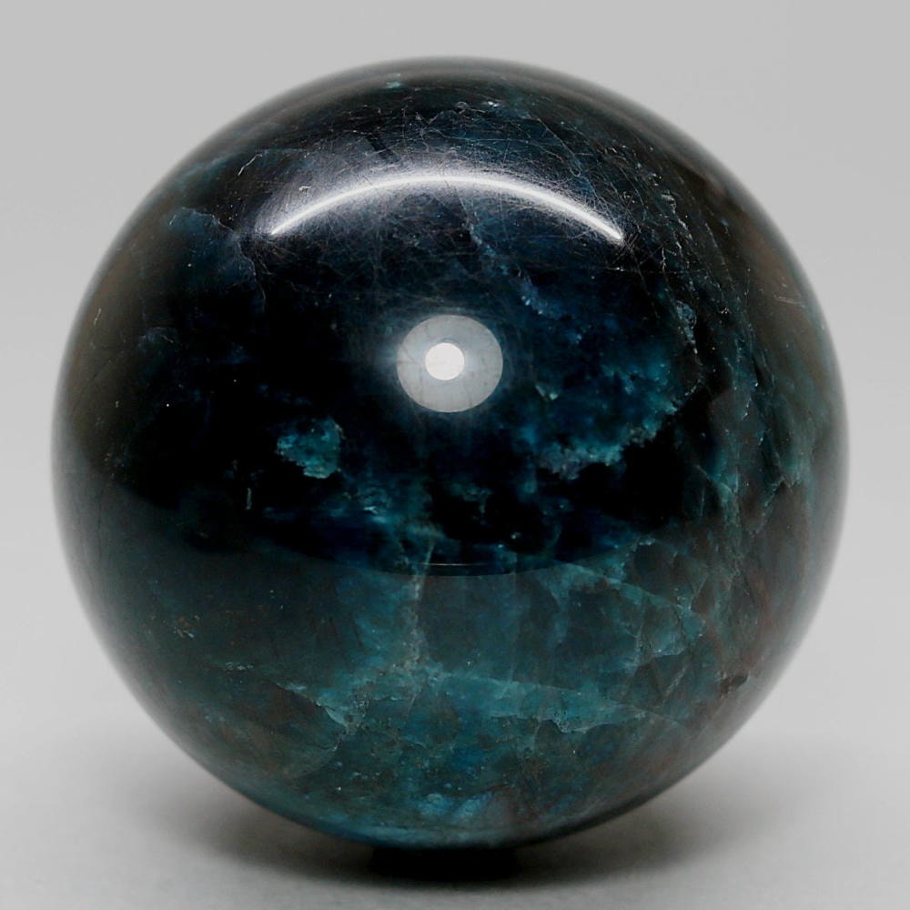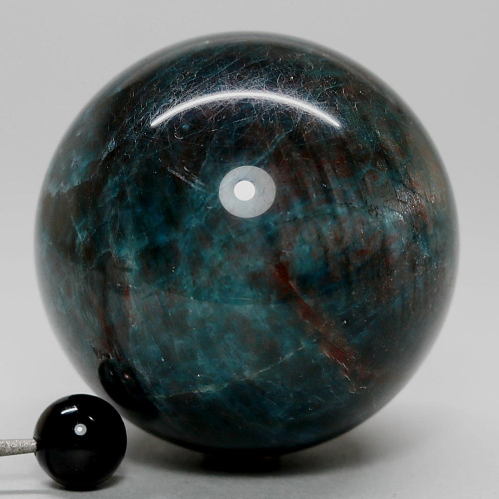 大きな原石が採れづらいアパタイトにとって、良質な丸玉の存在は珍しく、市場価値も高いと言えます。