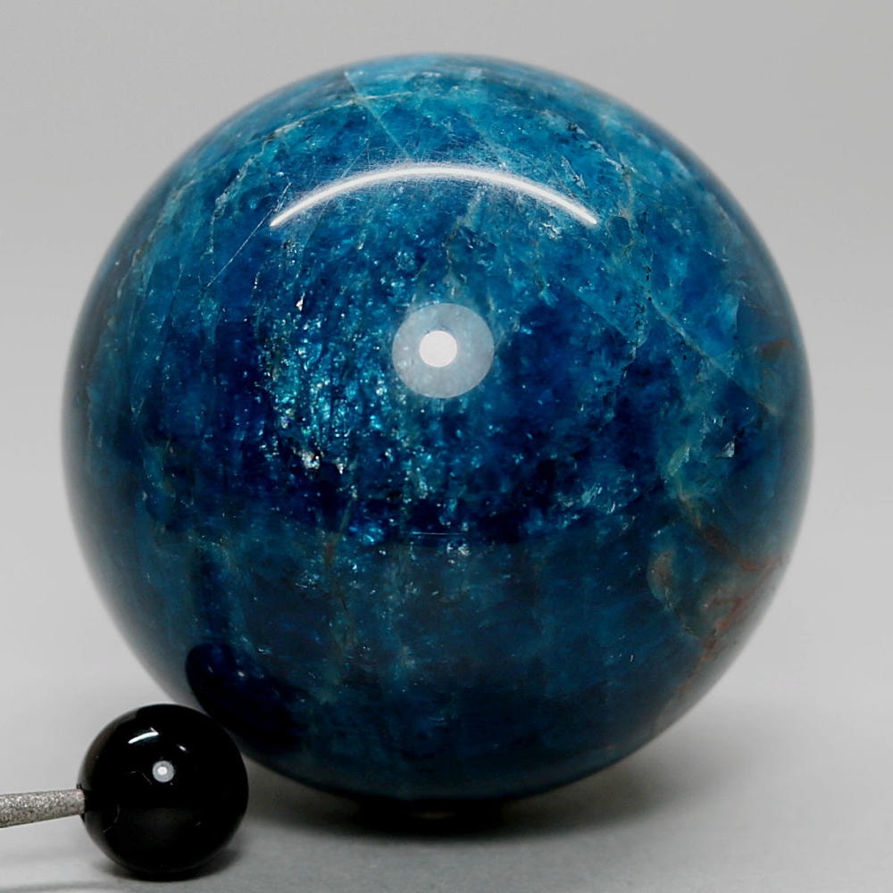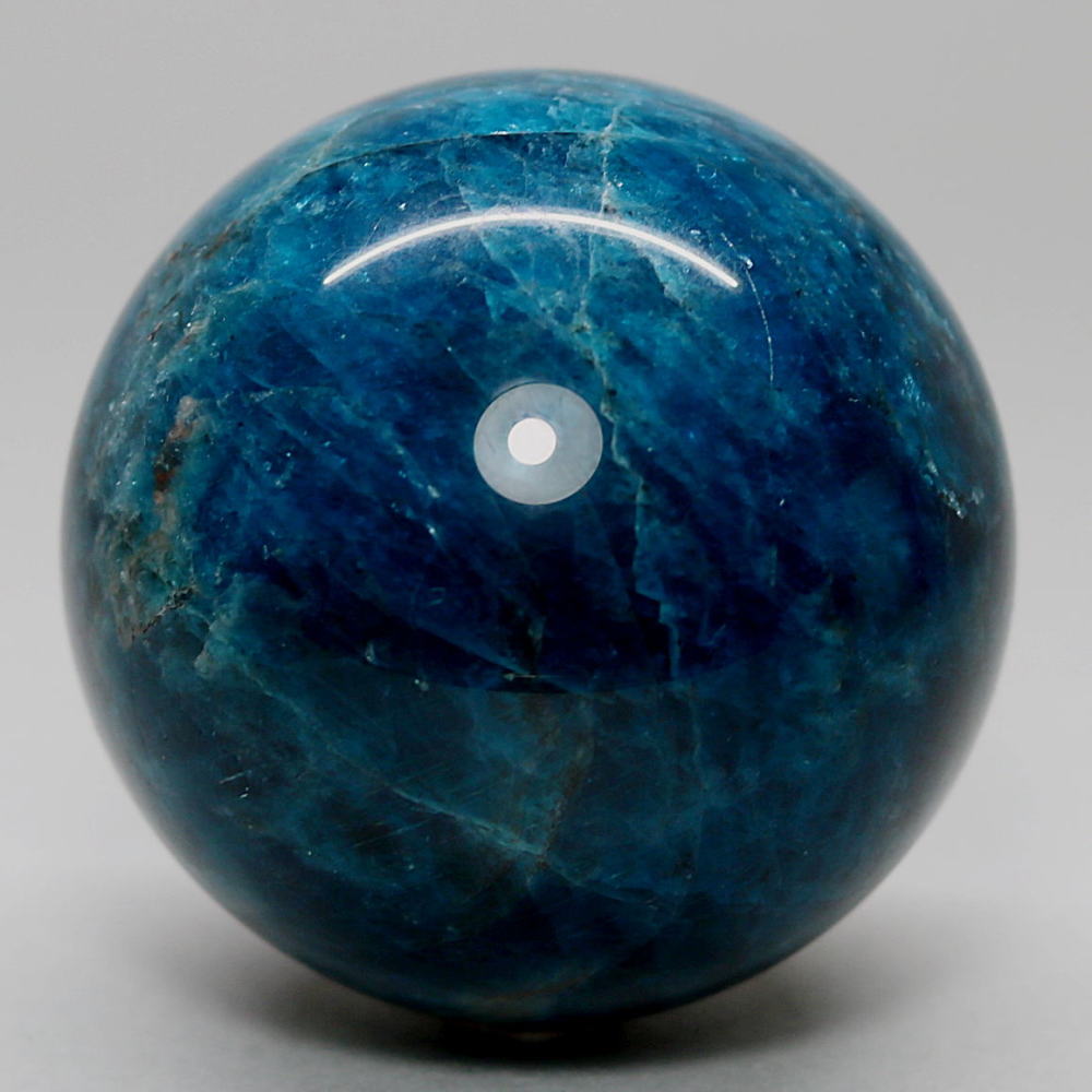 大きな原石が採れづらいアパタイトにとって、良質な丸玉の存在は珍しく、市場価値も高いと言えます。