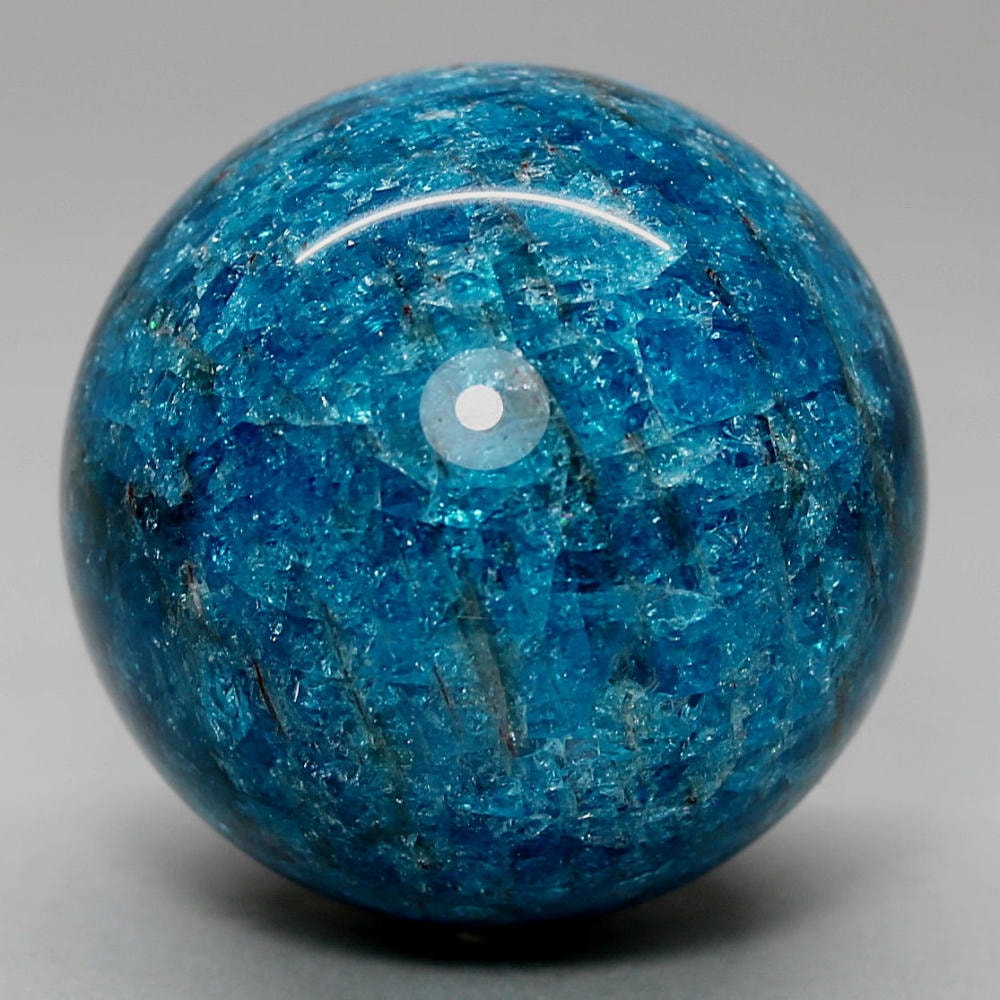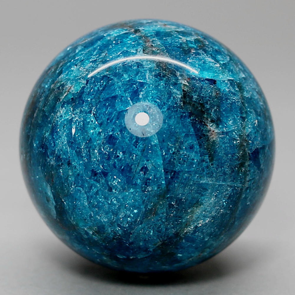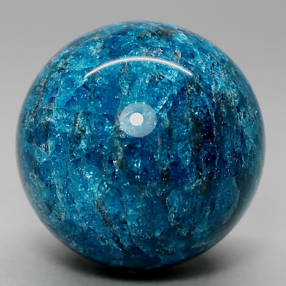 大きな原石が採れづらいアパタイトにとって、良質な丸玉の存在は珍しく、市場価値も高いと言えます。