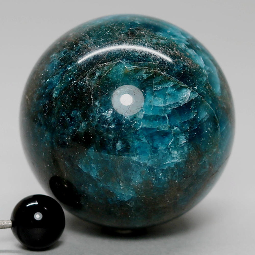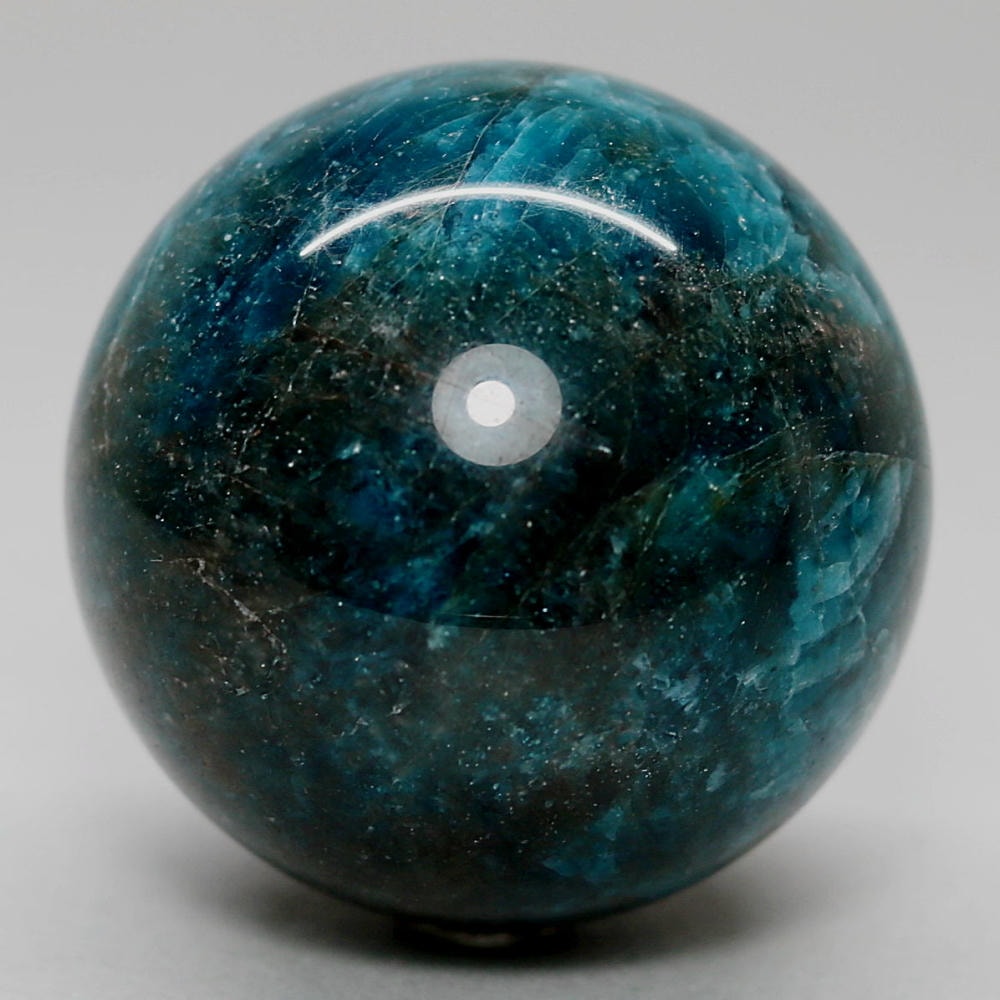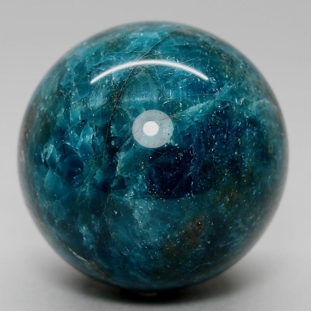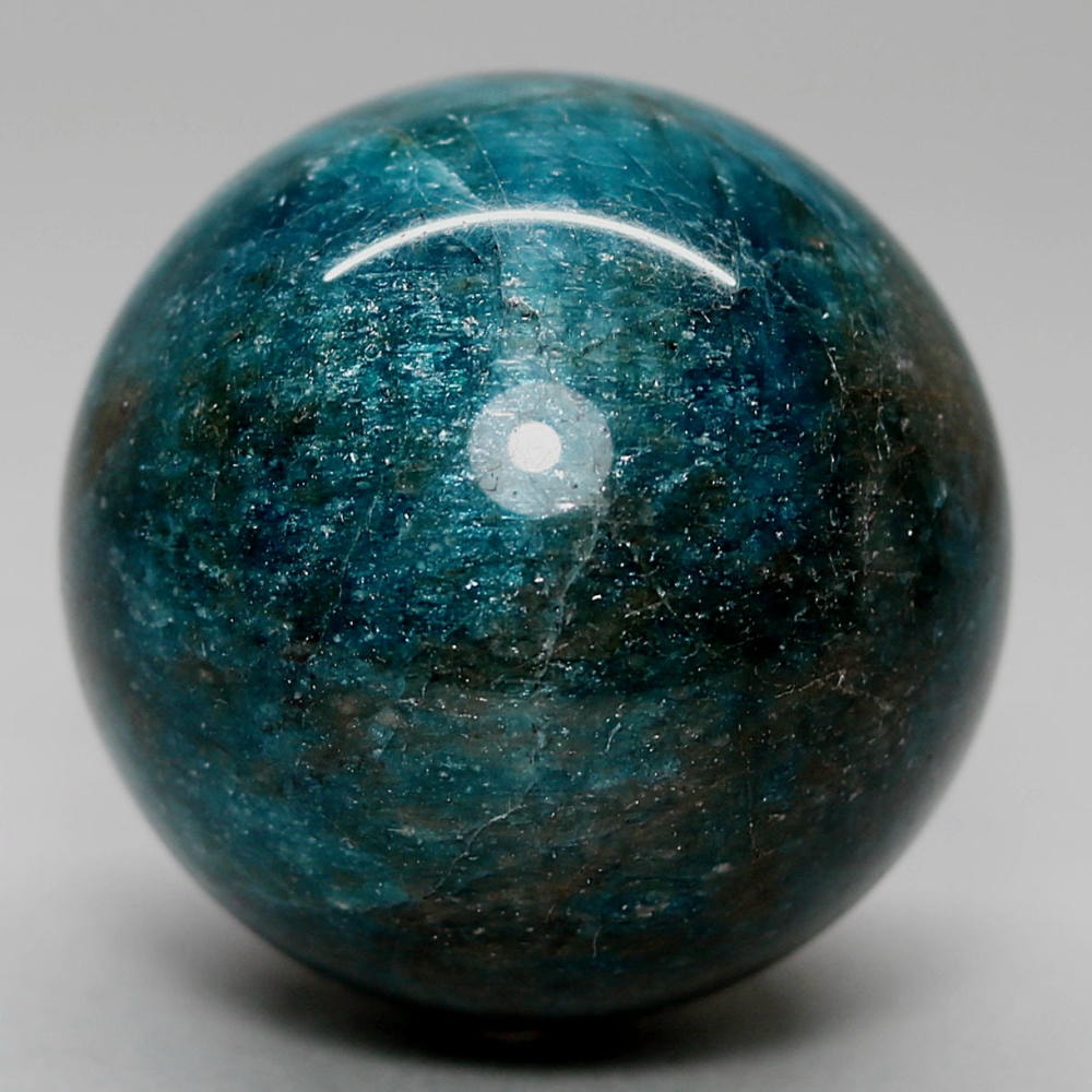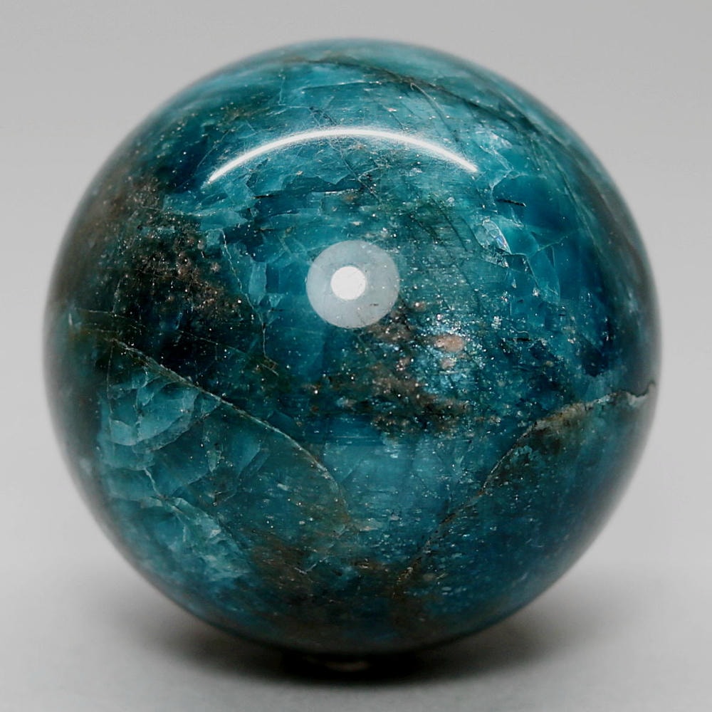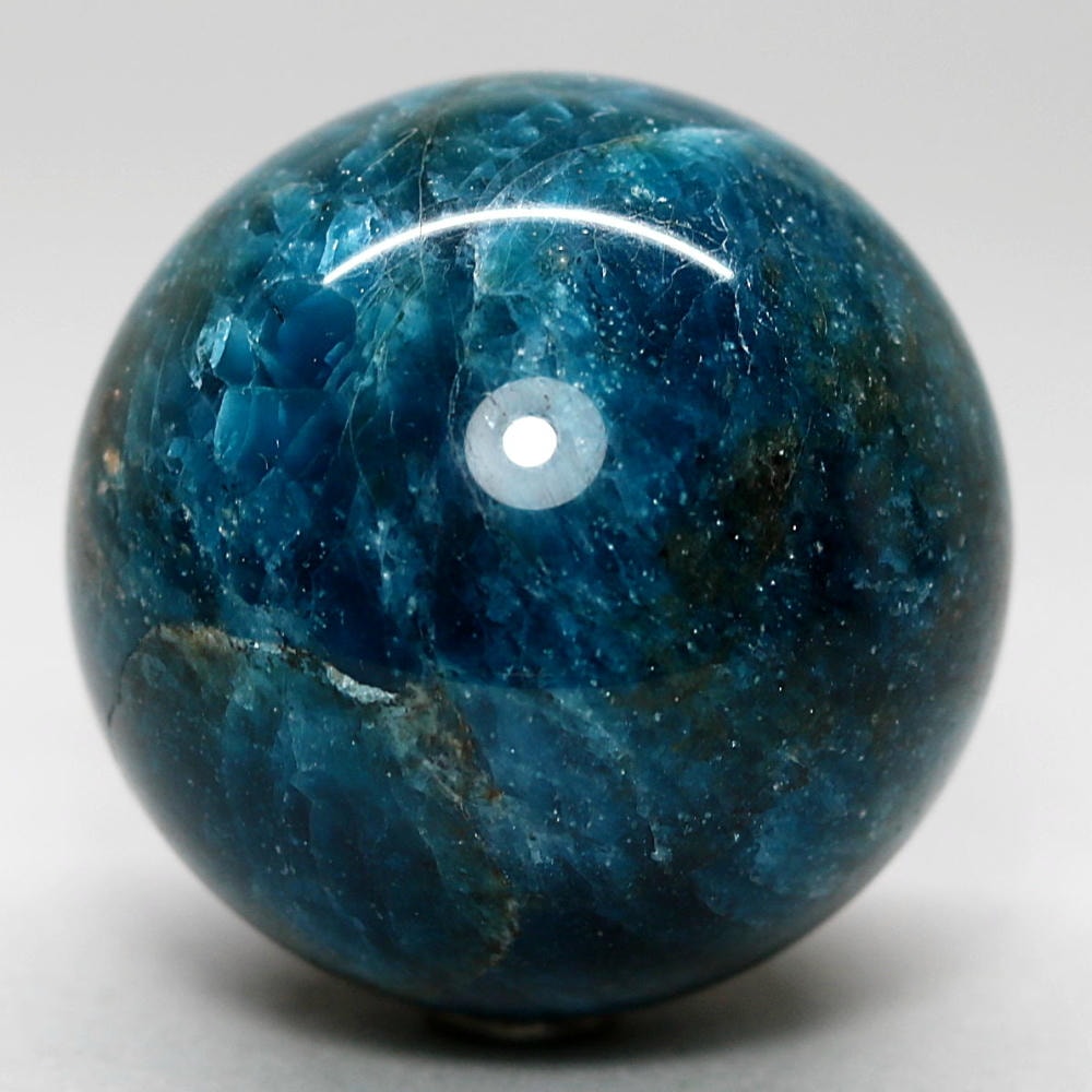大きな原石が採れづらいアパタイトにとって、良質な丸玉の存在は珍しく、市場価値も高いと言えます。
