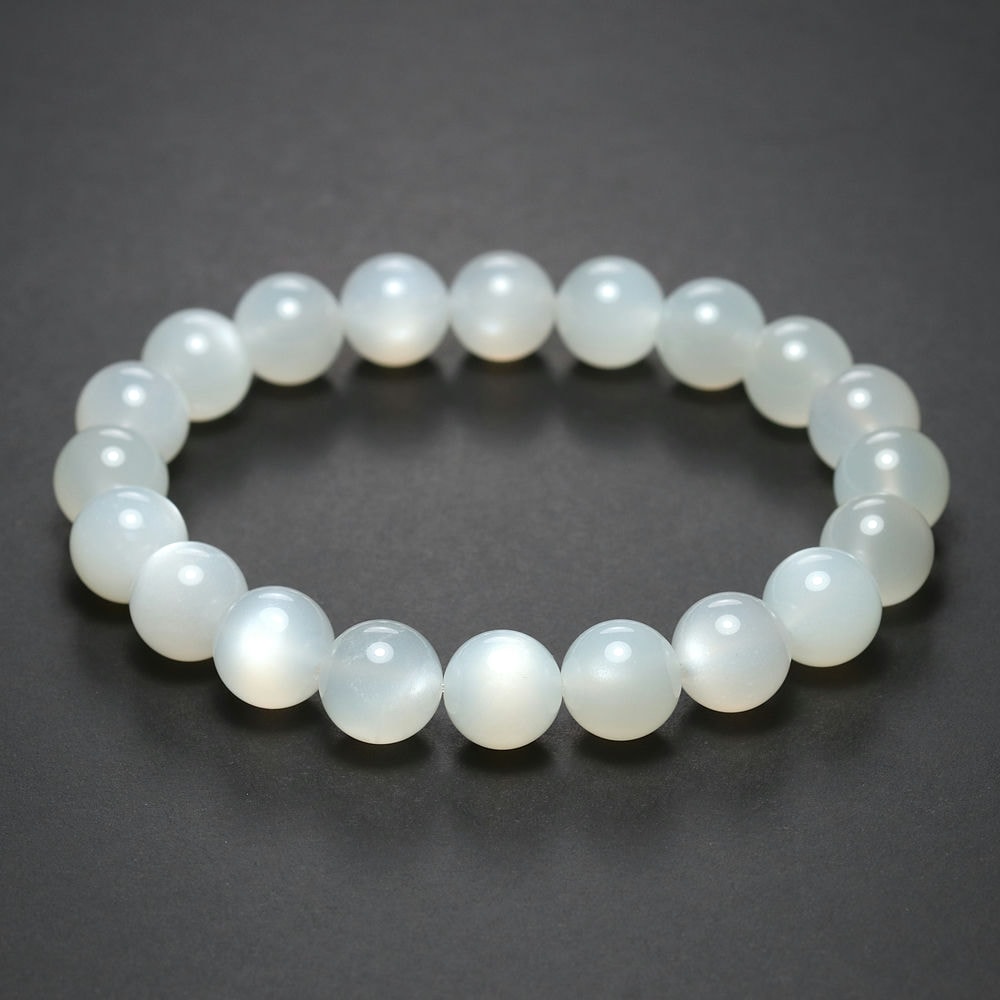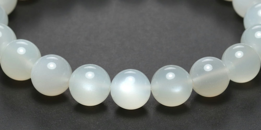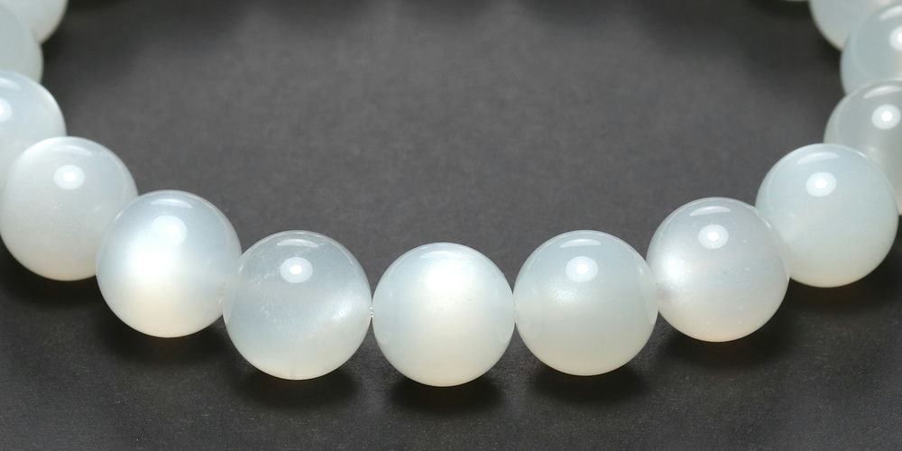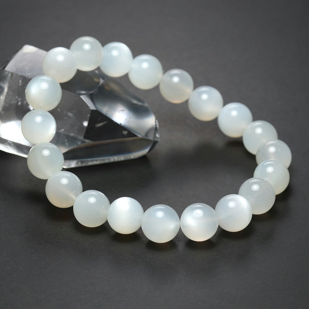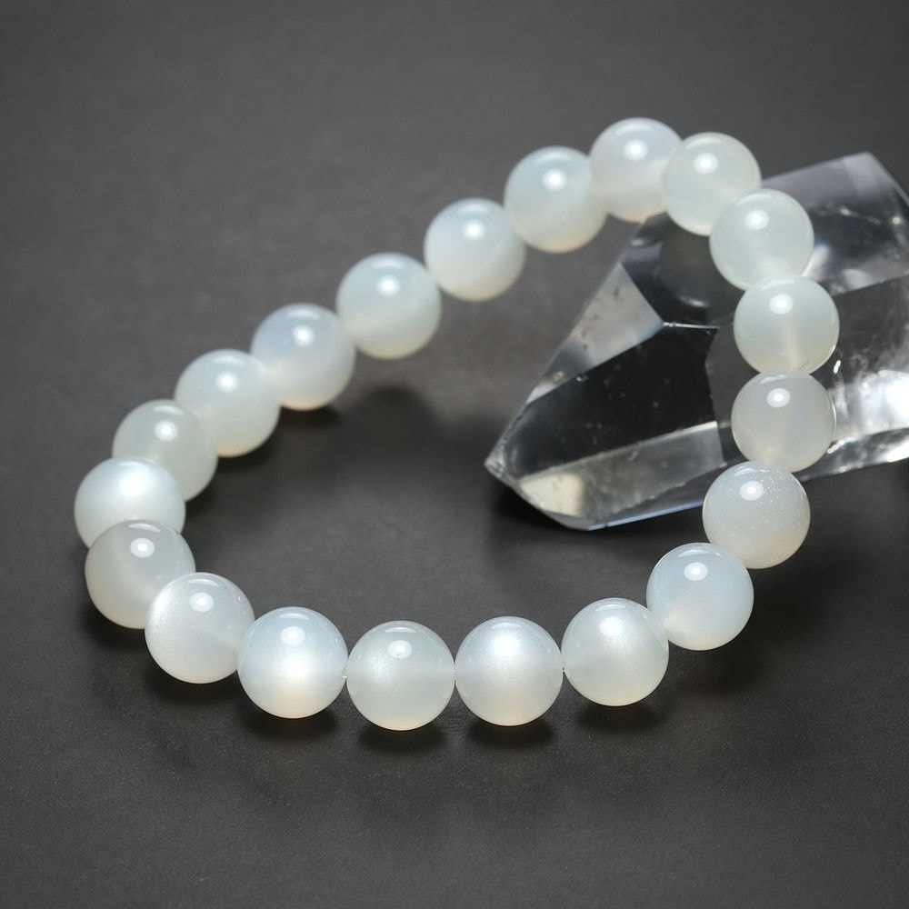 艶やかな白色の玉にホワイトシラー輝く「高品質ホワイトムーンストーンブレスレット」でございます。