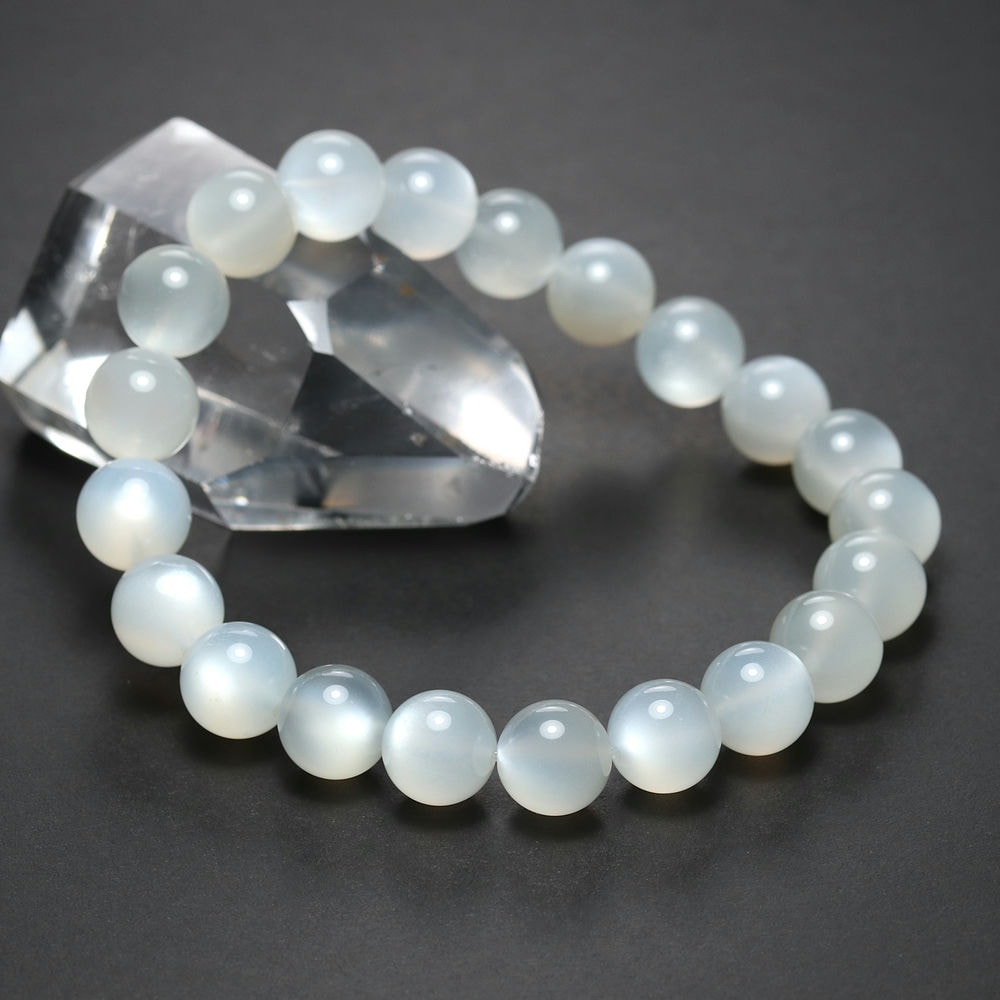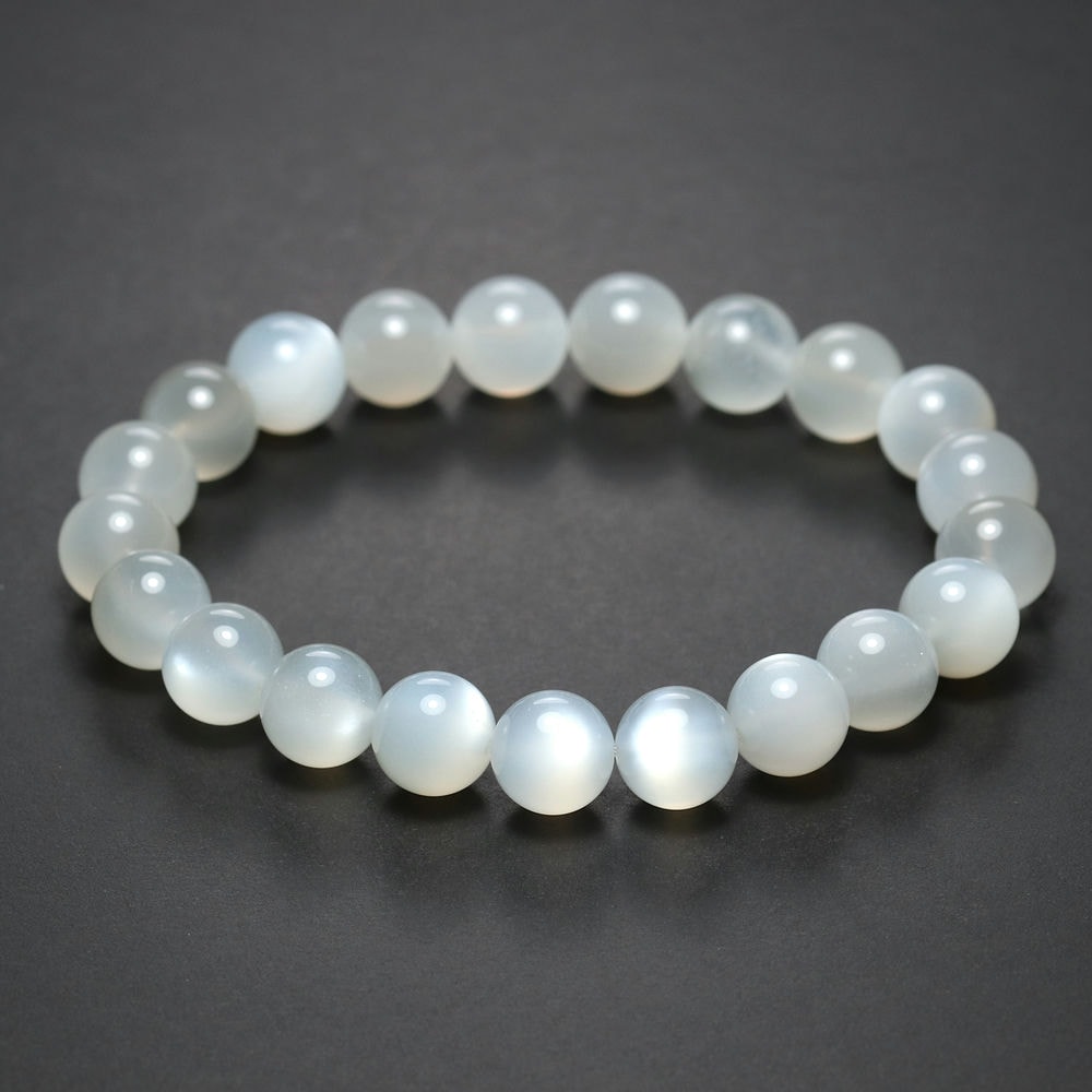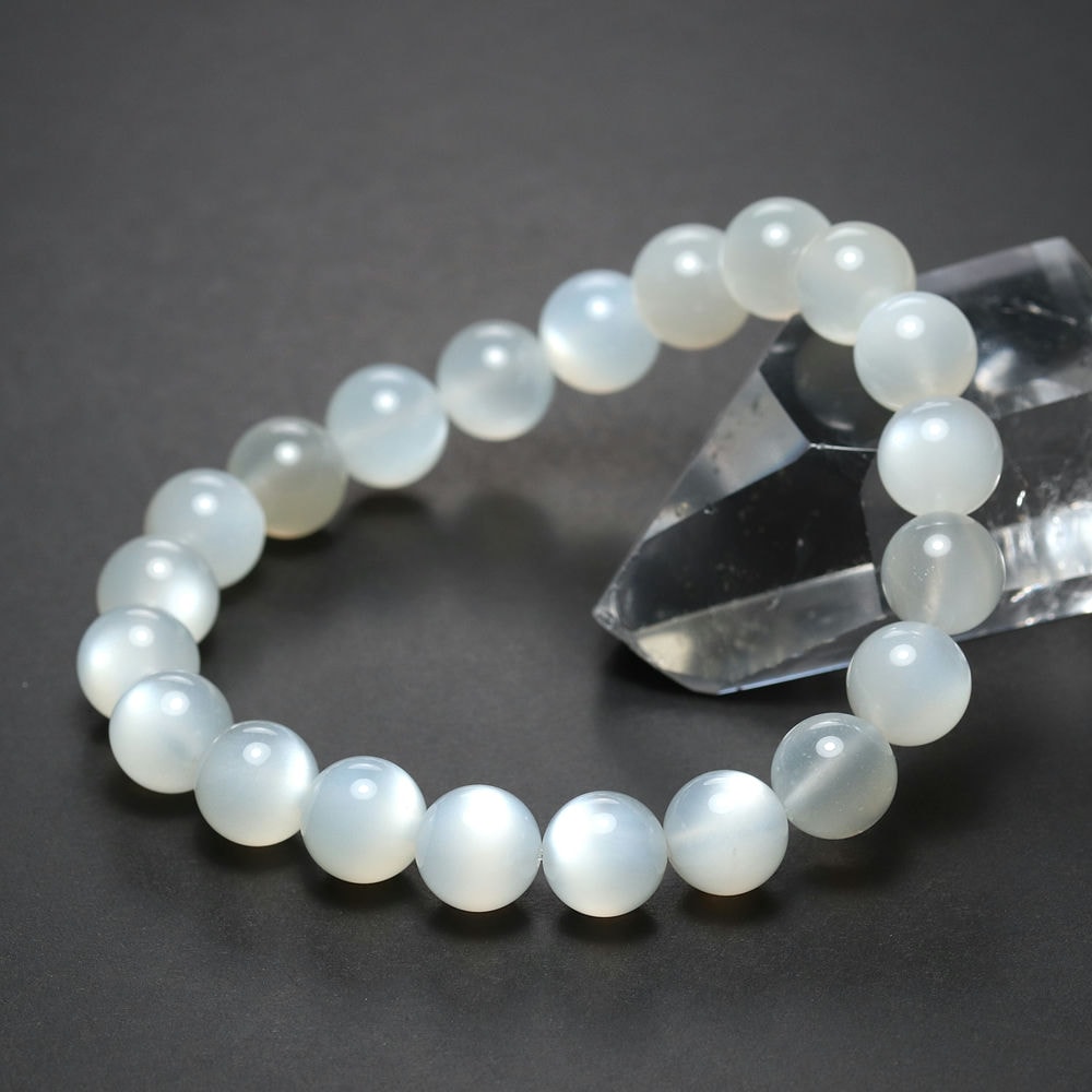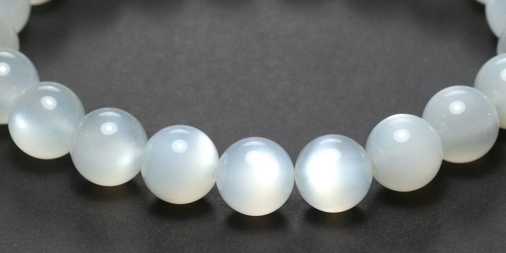 艶やかな白色の玉にホワイトシラー輝く「高品質ホワイトムーンストーンブレスレット」でございます。