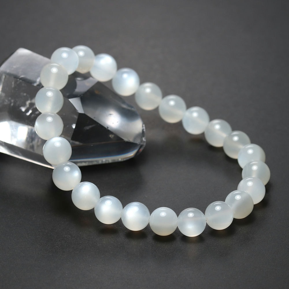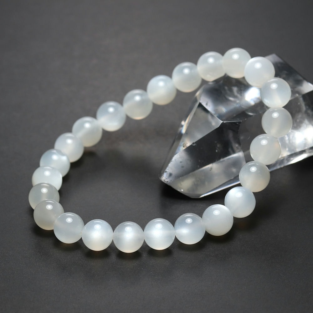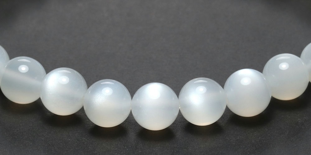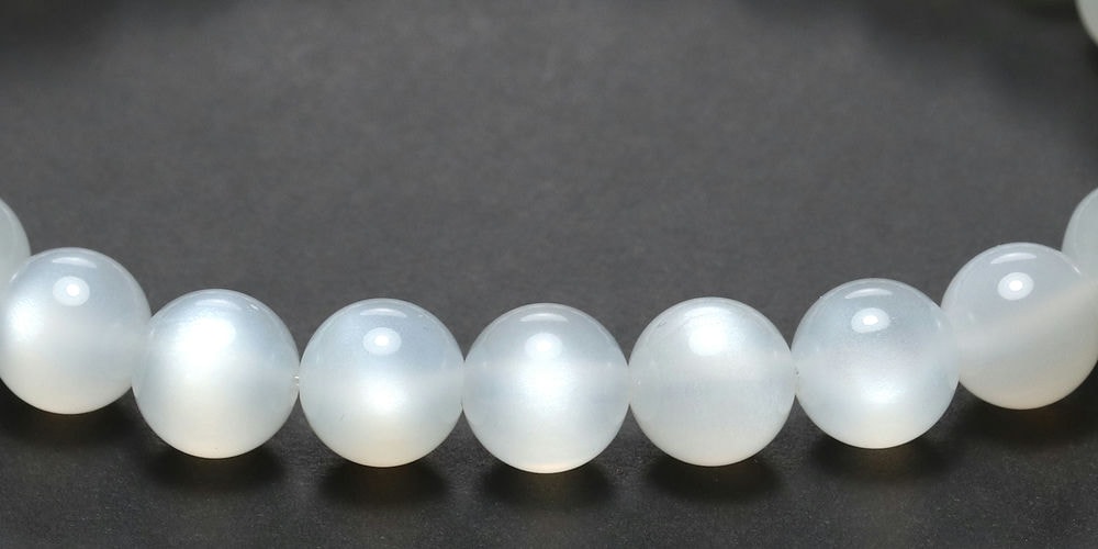 艶やかな白色の玉にホワイトシラー輝く「高品質ホワイトムーンストーンブレスレット」でございます。