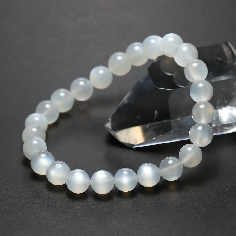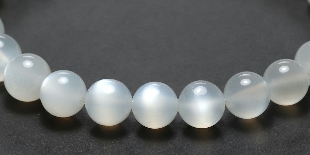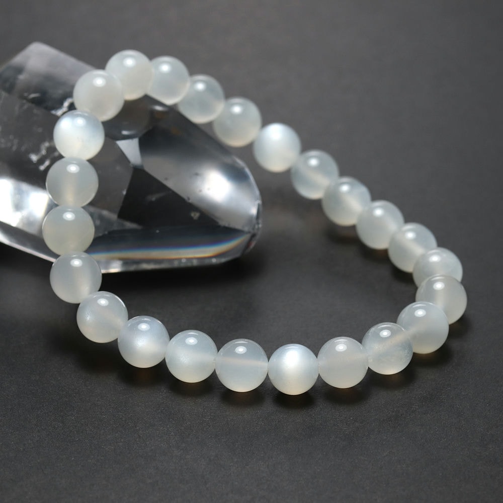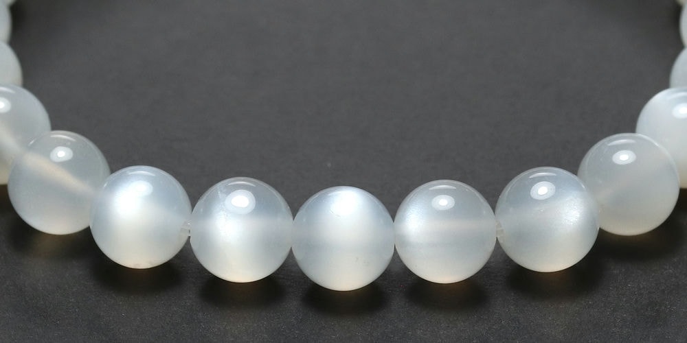 艶やかな白色の玉にホワイトシラー輝く「高品質ホワイトムーンストーンブレスレット」でございます。