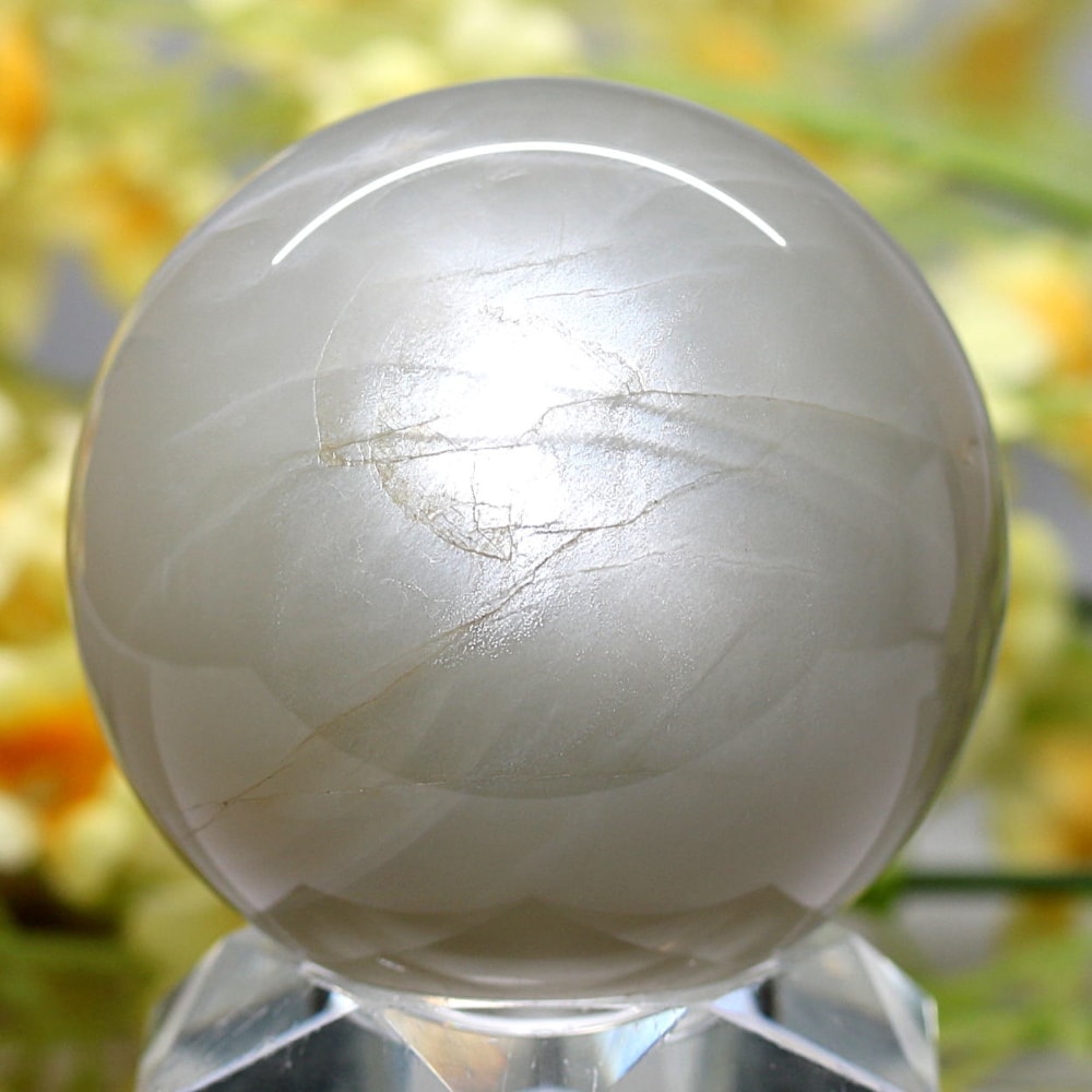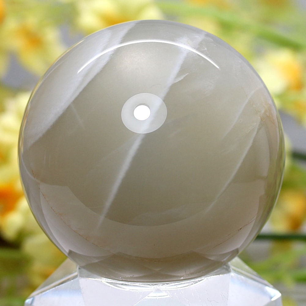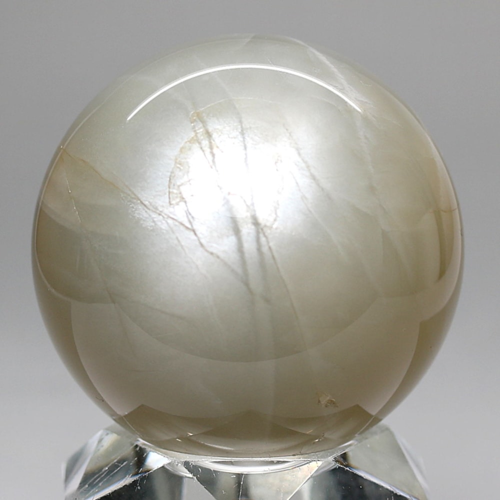 ホワイトシラー輝く美しいグレーベースのムーンストーンスフィア