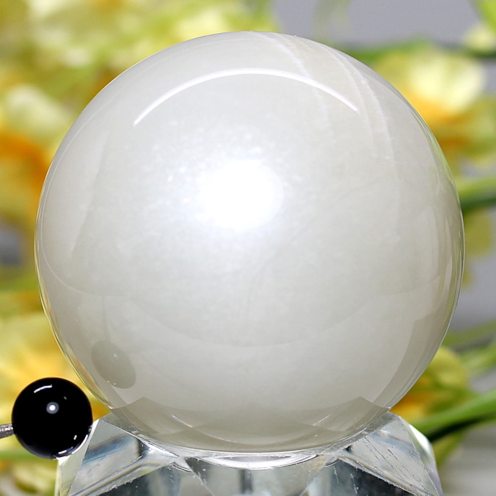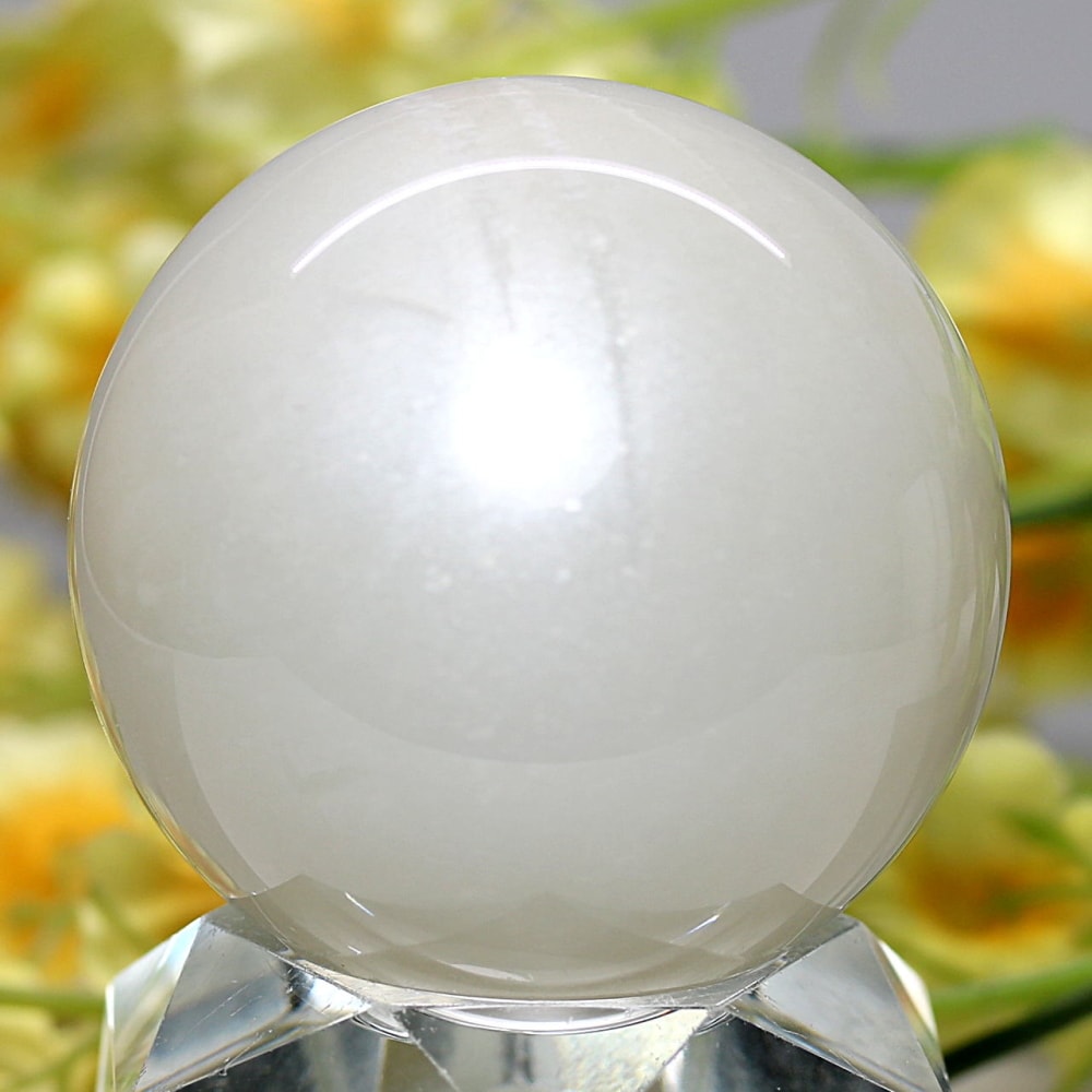 ホワイトシラー輝く美しいホワイトベースのムーンストーンスフィア