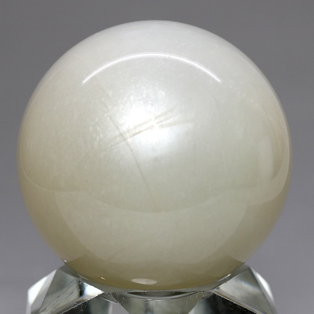 しかし、ご覧のお品は白ベースのムーンストーンに、柔らかく輝く白色のシラー効果(アデュラレッセンス)が現れる、神秘的なスフィアです☆