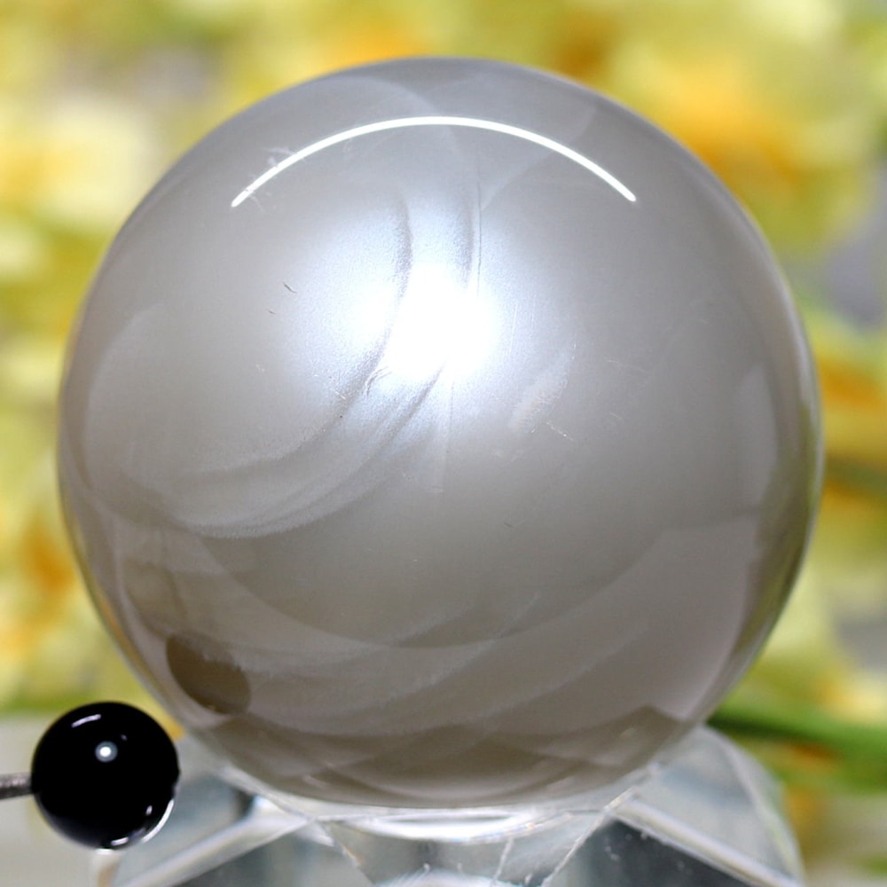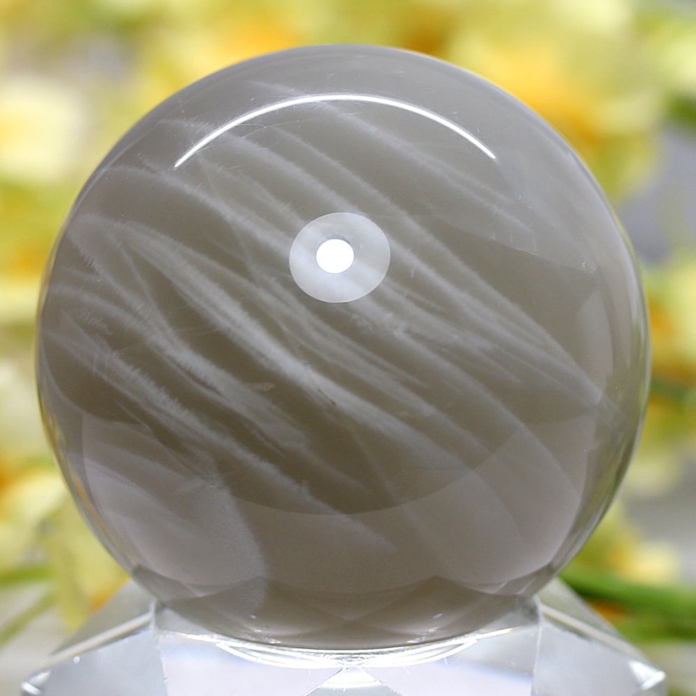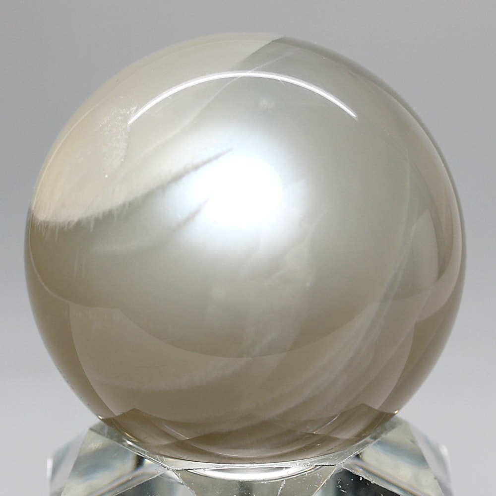 ホワイトシラー輝く美しいグレーベースのムーンストーンスフィア