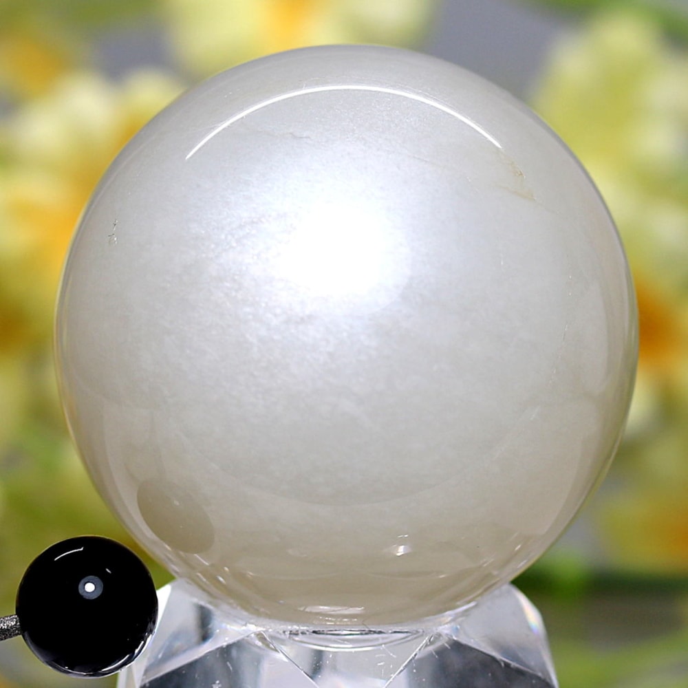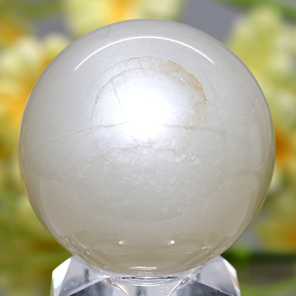 [高品質]ホワイトムーンストーン丸玉/スフィア(直径43.1mm)¥5,500クイックガイド送料