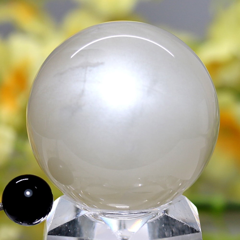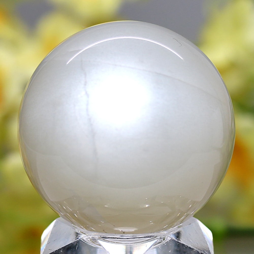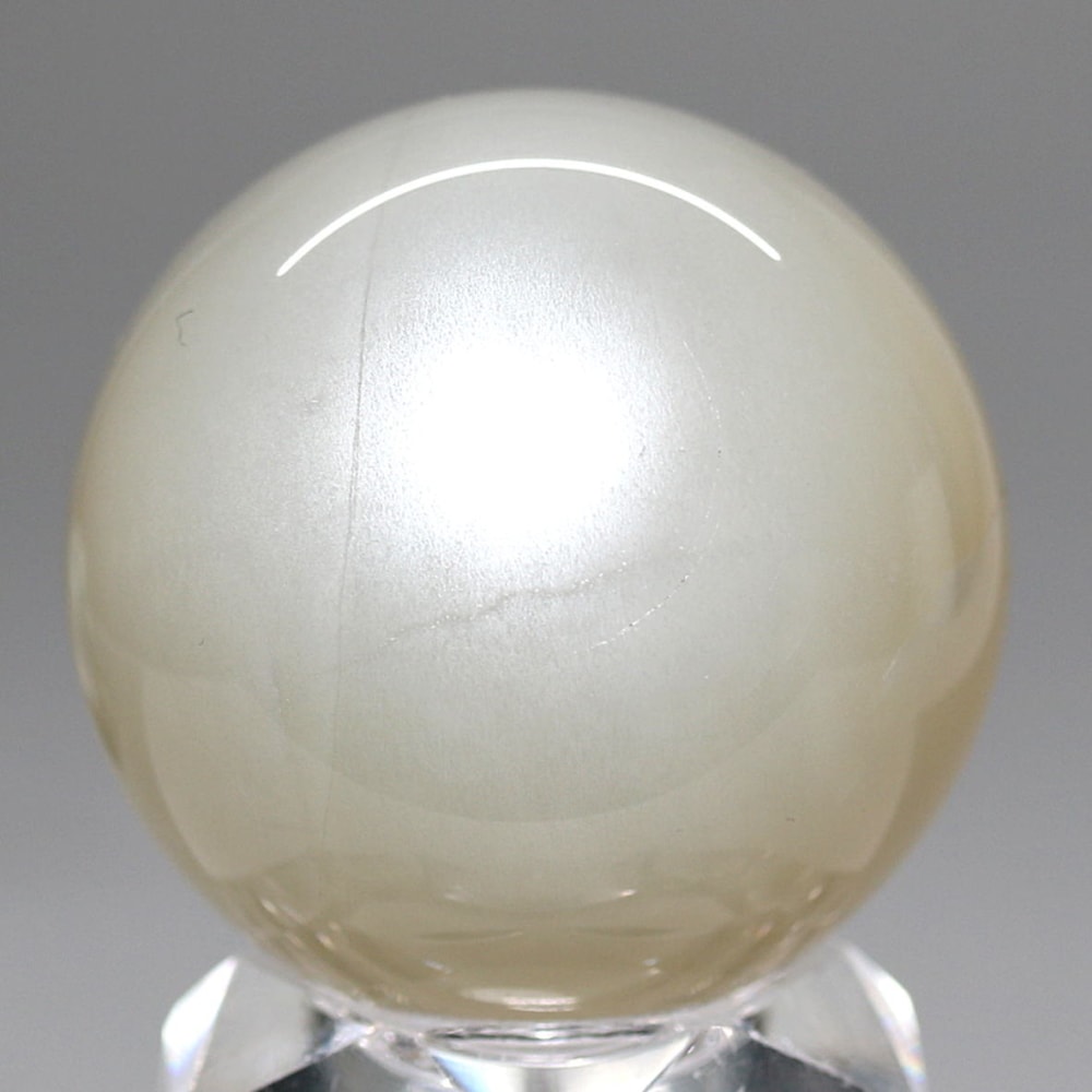 [高品質]グレーホワイトムーンストーン丸玉/スフィア(直径39.3mm)¥4,100クイックガイド送料